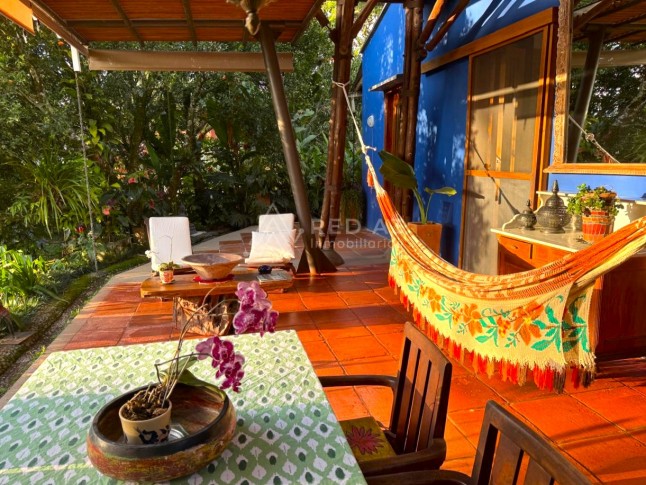 Ubicado en un condominio con portón eléctrico en donde se encuentran 5 viviendas, rodeado de naturaleza y tranquilidad, este inmueble cuenta con 130 m² construidos en un lote de 1.600 m². Se distribuye en 2 habitaciones con baño completo, cocina con alacena, sala, comedor, baño social, closet de linos, cuarto de ropas, terraza con pérgola y zona exterior con brasero para fogatas. Además de los senderos ecológicos, la propiedad ofrece espacio al aire libre para parquear tres automóviles.