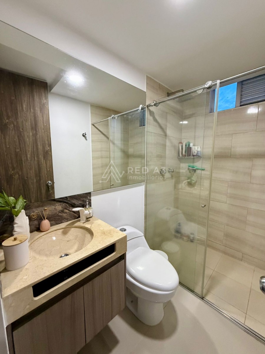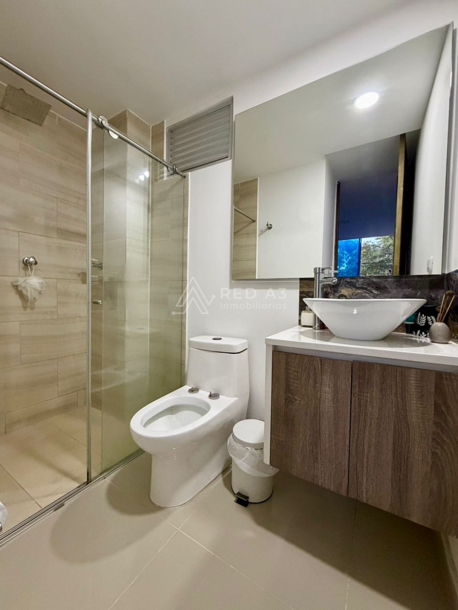 Cuenta con 75m2, en piso 3, cuenta con habitación principal con baño privado y clóset, dos habitaciones auxiliares con clóset o una puede ser utilizada como gran vestier o estudio, baño social con ducha, cocina integral, zona de ropas con punto de gas para secadora y sala-comedor con vista natural a guadual.