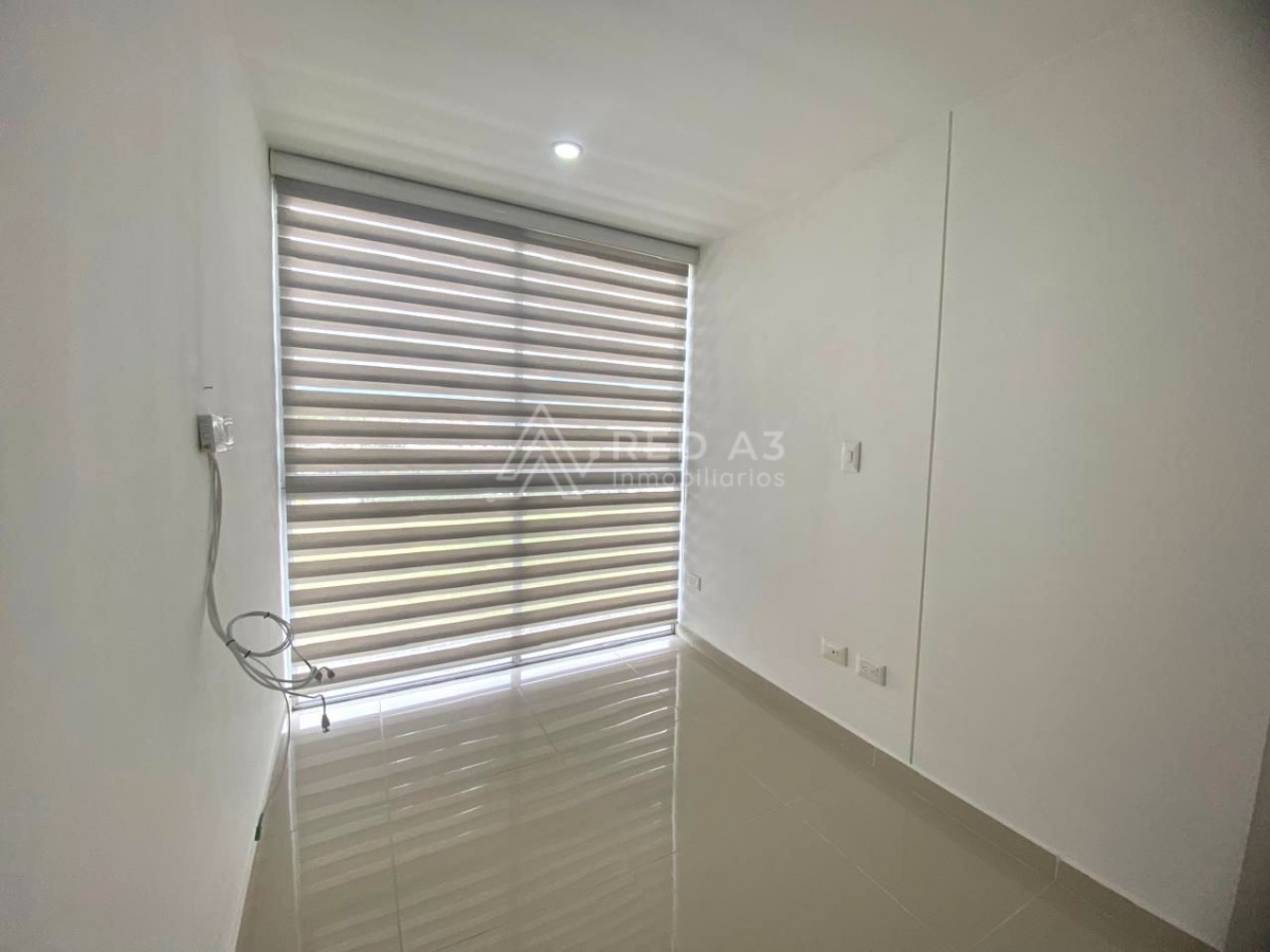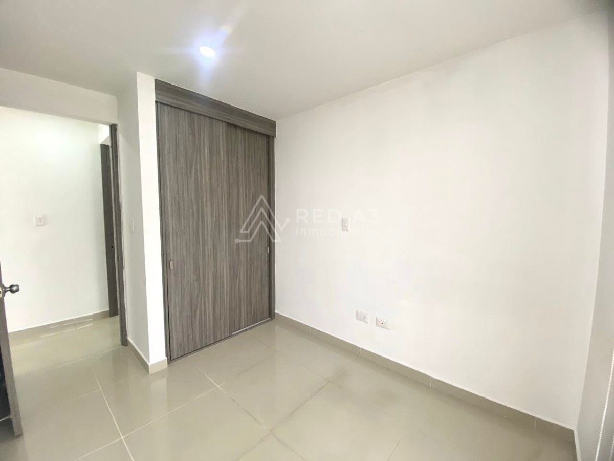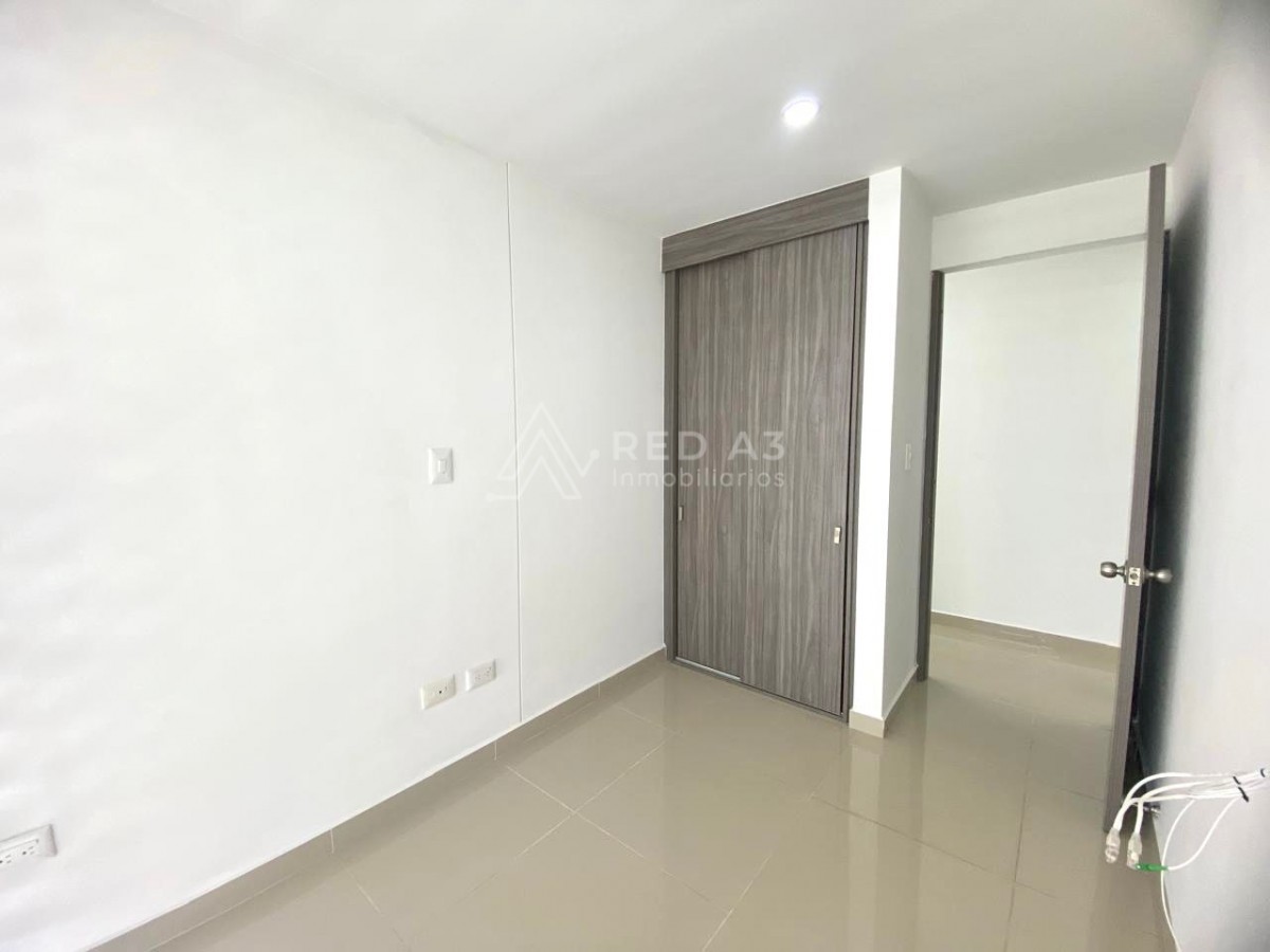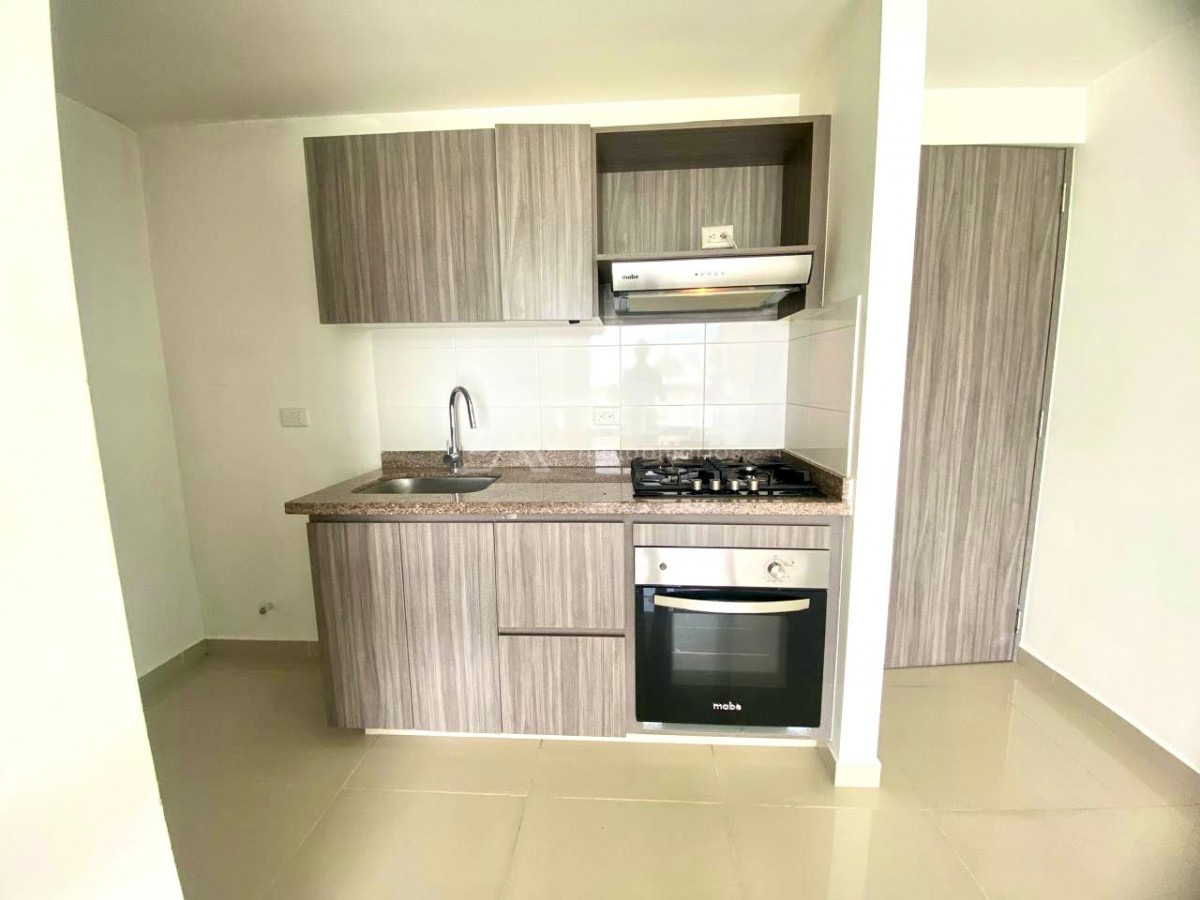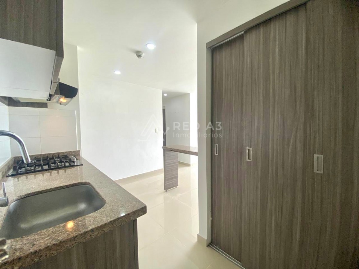 El apartamento tiene 65 m² construidos, distribuidos en sala comedor, cocina integral, 3 habitaciones, y parqueadero cubierto.
