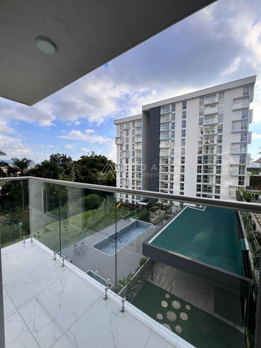 Apartamento en piso 6, con área construida 73 m², balcón, cocina integral, 3 habitaciones, estudio, 2 baños completos, calentador, zona de lavandería 1 y parqueadero con deposito. El conjunto Brinda diversas comodidades y servicios para tu disfrute, como piscina, salón comunal, gimnasio y zona infantil, entre otros. Además, el inmueble cuenta con un parqueadero cubierto y depósito para mayor comodidad. La seguridad es una prioridad, ya que el conjunto cuenta con vigilancia y portería las 24 horas, brindándote tranquilidad y protección.