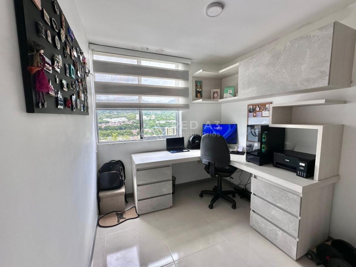 Apartamento ubicado en piso doce, cuenta con un área de 65 m2 distribuidos en sala comedor, cocina semintegral con barra americana, balcón con vista a la vía principal, 2 habitaciones auxiliares con closet habitación principal con baño privado y closet y zona de ropas.