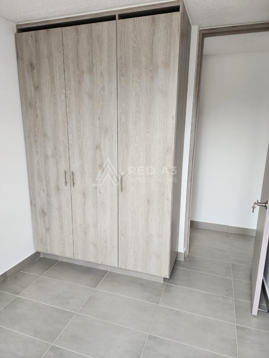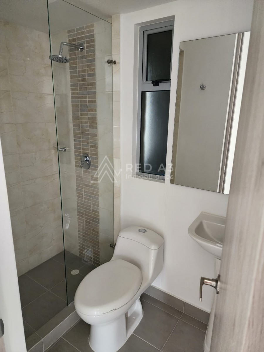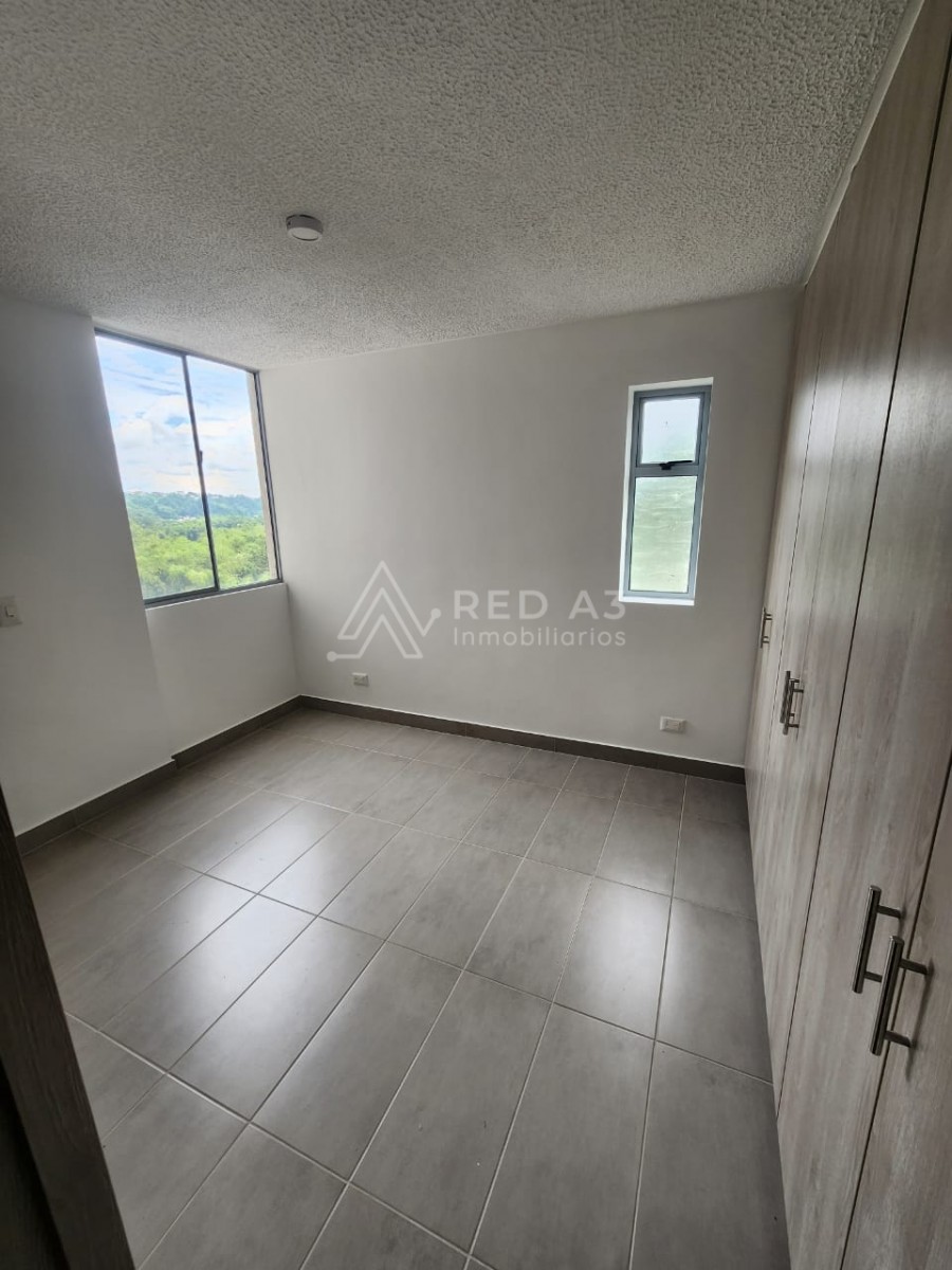 Apartamento ubicado en piso nueve, cuenta con un área construida de 63m² distribuidos en sala comedor, balcón con una agradable vista, cocina integral, 1 habitación auxiliar con closet, 1 baño completo, habitación principal con closet y baño privado, zona de ropas y parqueadero.