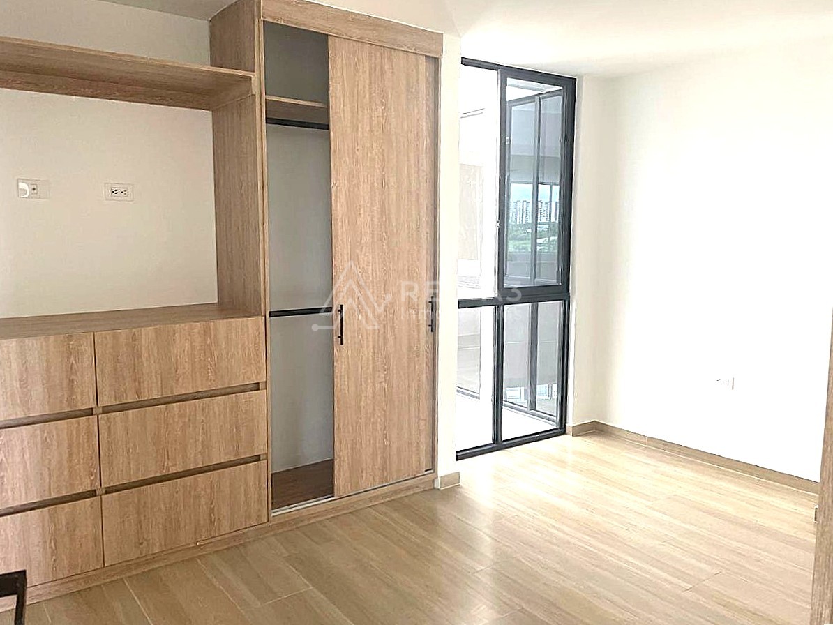 El apartamento tiene un área de 74 m², está ubicado en el quinto piso y se distribuye en sala-comedor, cocina semi-integral, dos alcobas, dos baños, balcón, zona de ropas y parqueadero.