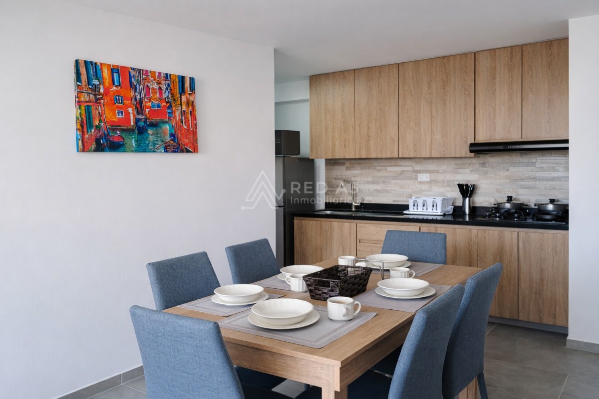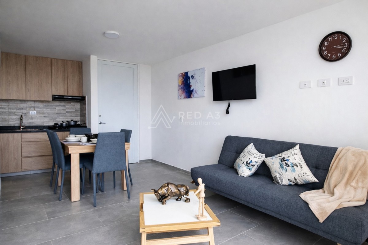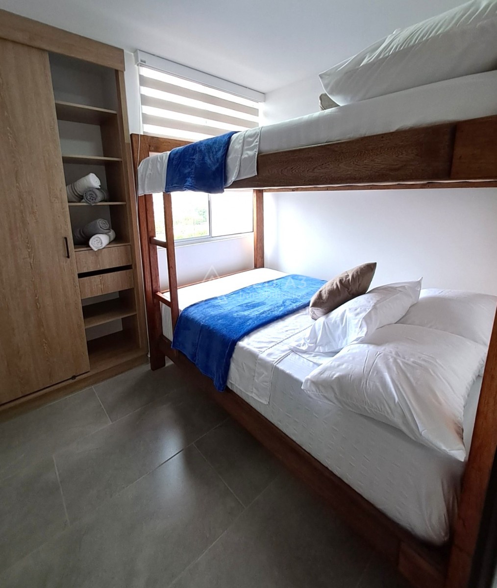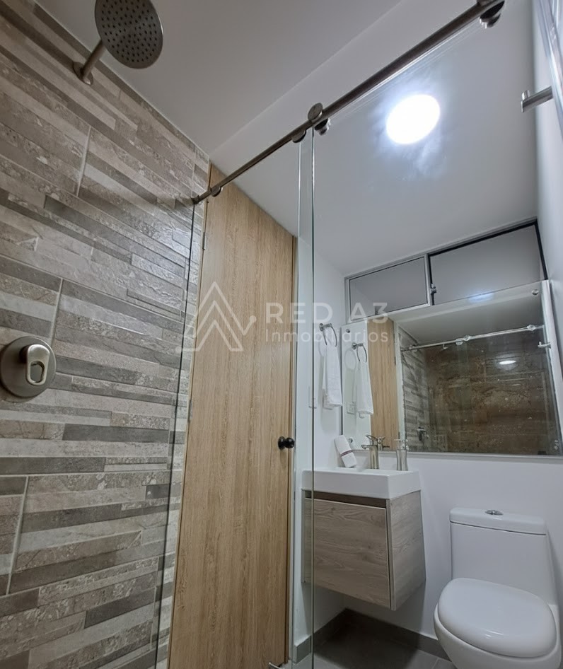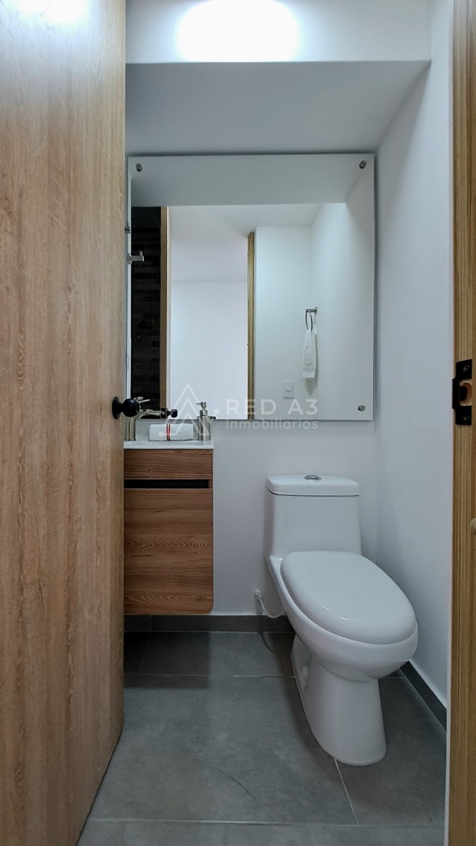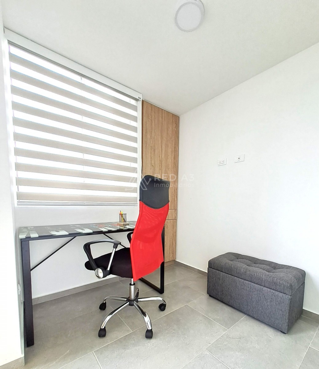 El apartamento cuenta con área construida 49 m², piso 2 con ascensor, cocina semi-integral, 2 habitaciones con closet, estudio, 2 baños completos, zona de lavandería y calentador. El conjunto cerrado ofrece una zona social con piscina para adultos y niños, juegos infantiles, zonas de mascotas, cancha fútbol 5 y cancha múltiple basketball y volleyball, senderos para jogging, zona Picnic, gimnasio, salón social, planta eléctrica, shut de basuras , parqueaderos comunales y portería con vigilancia las 24 horas.