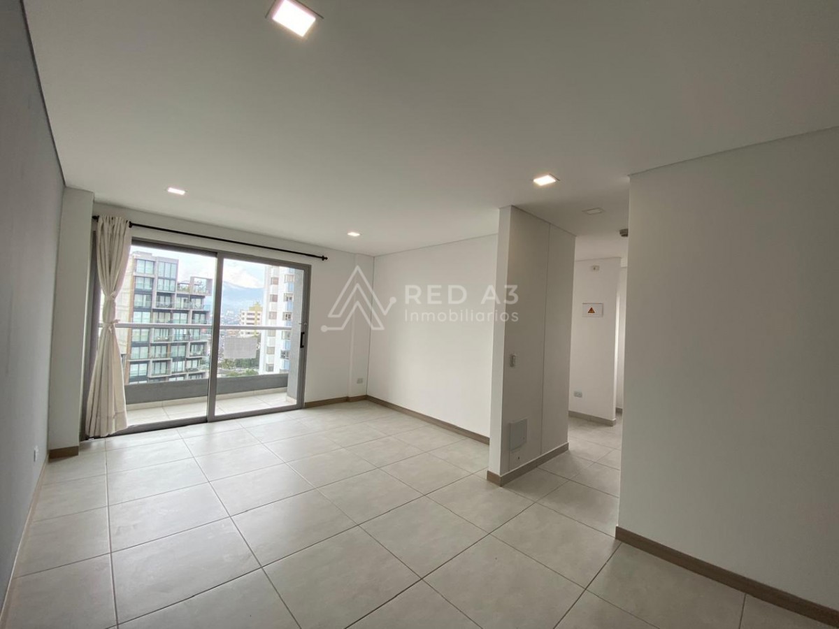 Apartamento ubicado en Los Alpes, apartamento de 82 m2, ubicado en el piso 7, 3 habitaciones, habitación principal con baño y vestier privado, 2 habitaciones auxiliares cada una con closet que comparten baño, sala-comedor, cocina, zona de ropas, balcón y parqueadero en sótano. Edificio con lobby de acceso doble altura, salón social, gimnasio, terraza con zona de juegos infantiles, zona para mascotas y solarium con BBQ. Planta eléctrica de suplencia total, circuito cerrado de tv y dos ascensores de alta velocidad. La ubicación estratégica de estar cerca a centros comerciales, supermercados, clínicas, restaurantes, y todo tipo de sitios de interés para el diario vivir permiten llegar caminando.