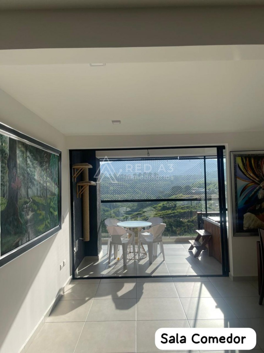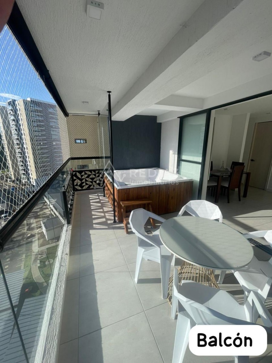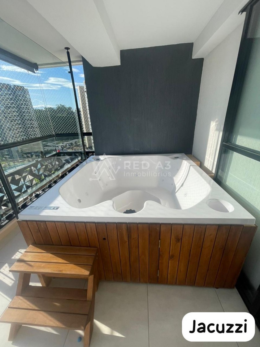 Sala-comedor con balcón y jacuzzi con agradable vista.