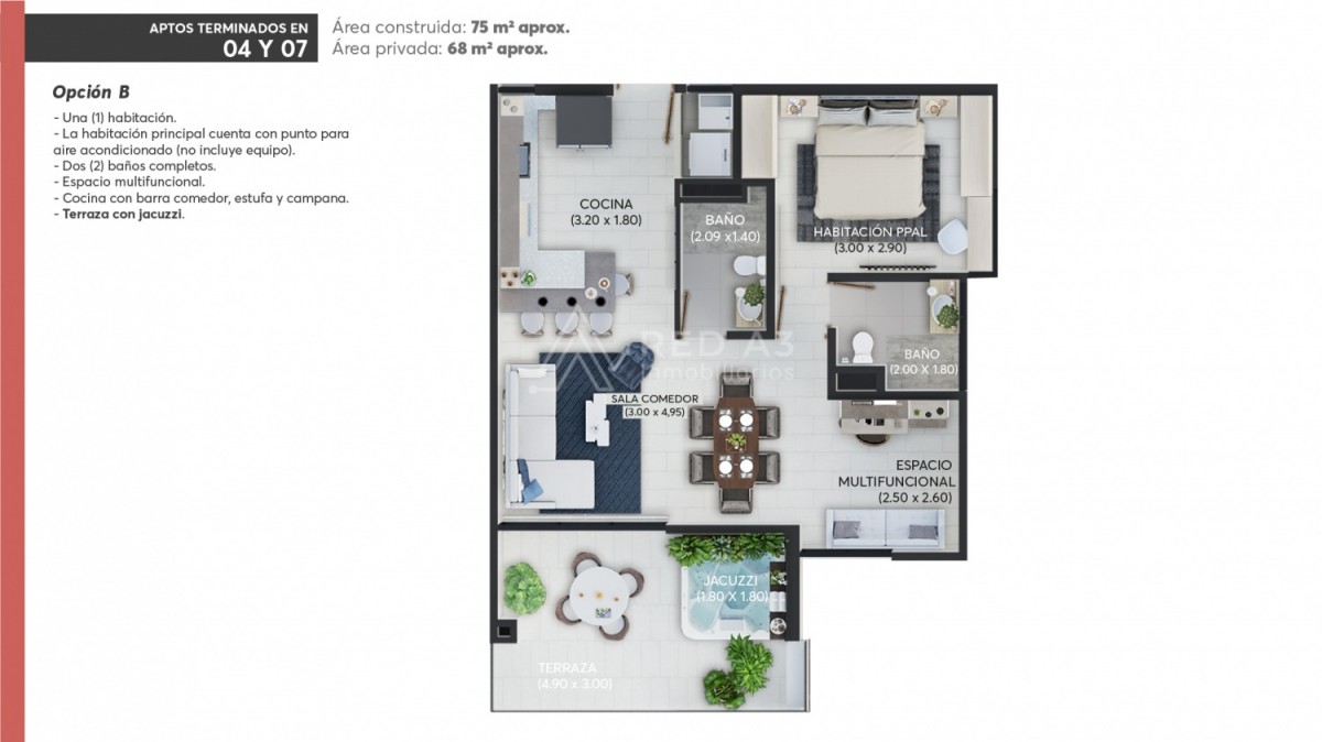 El conjunto ofrece comodidades exclusivas: portería y seguridad 24 horas, piscinas para adultos y niños, sauna, turco, amplias zonas verdes, juegos infantiles, pista de patinaje y trote, cancha múltiple, voleibol playa, área de coworking y sala de lectura, ciclovía, lavandería, gimnasio cubierto y salón social.