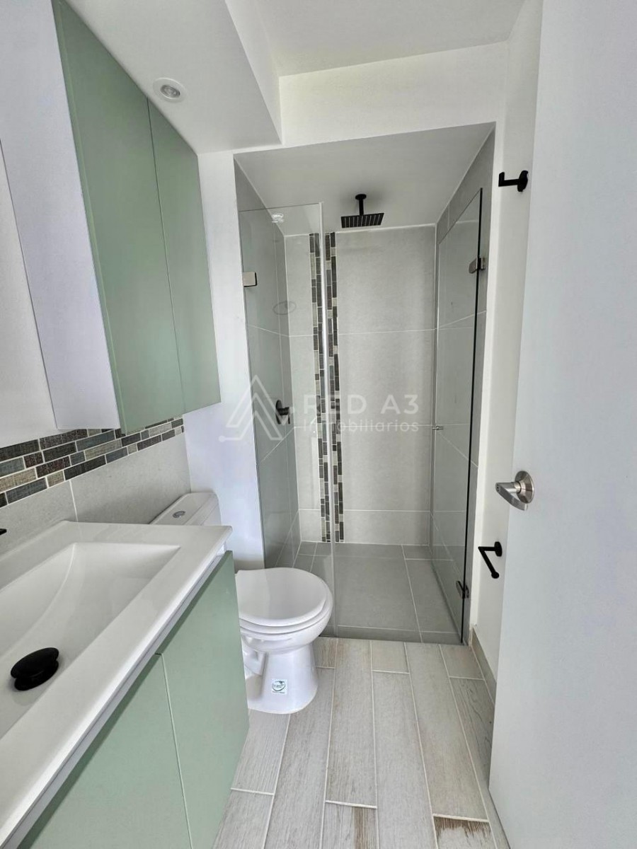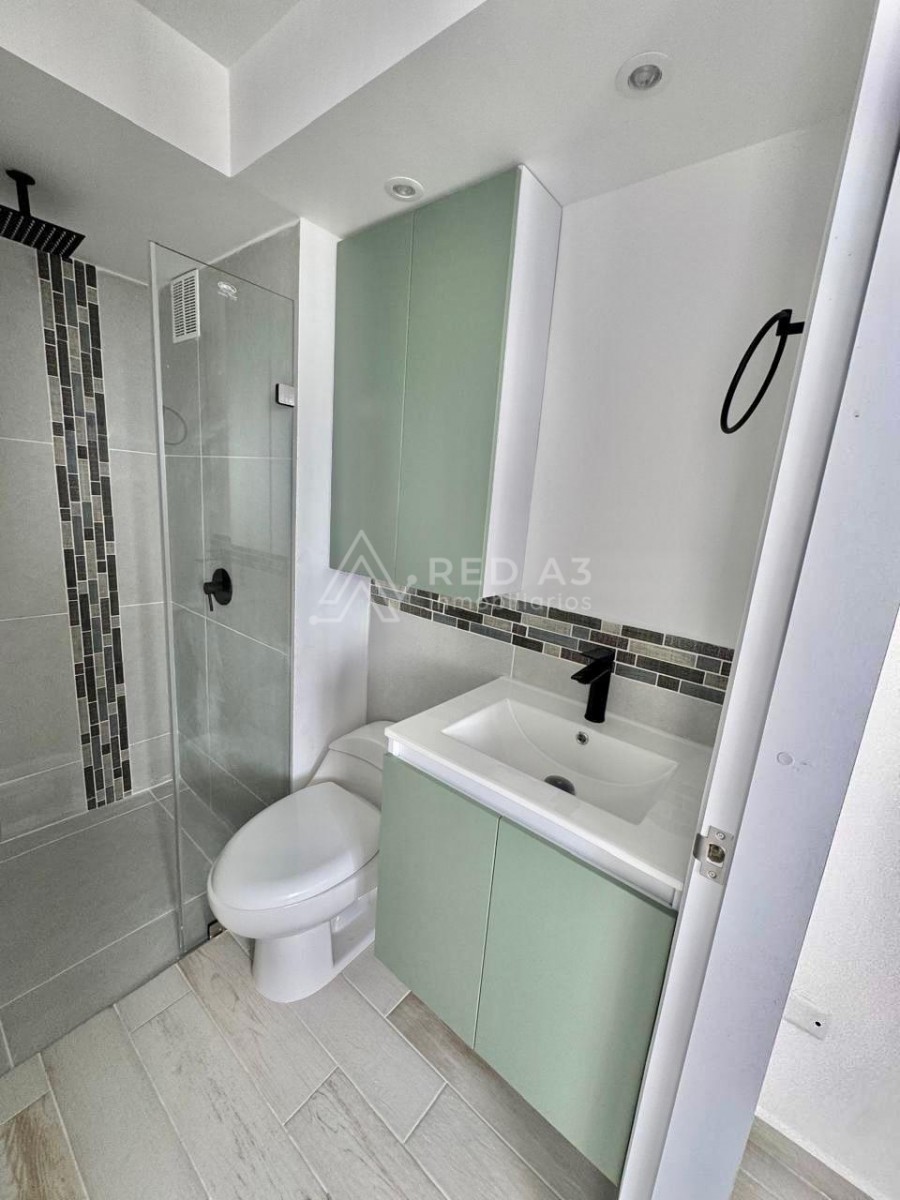 Apartamento ubicado en piso doce, cuenta con un área de 48 m2 distribuidos en sala comedor, cocina semi integral, espacio para estudio, baño social completo, habitación auxiliar con closet, habitación principal con baño privado y closet y zona de ropas.