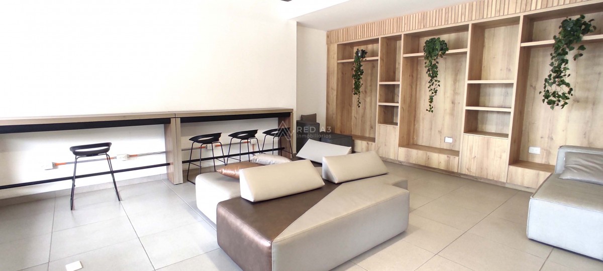 - Cocina integrada a sala comedor con buenos espacios para almacenamiento y barra americana
