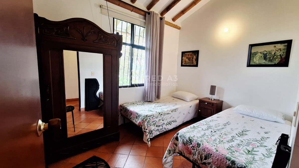 Casa campestre en arriendo, completamente amoblada, ubicada a solo 1.8 km de la Variante La Romelia–El Pollo, en Dosquebradas. Su privilegiada posición en la montaña permite disfrutar de una vista panorámica excepcional hacia Dosquebradas y Pereira, rodeada de tranquilidad y naturaleza.