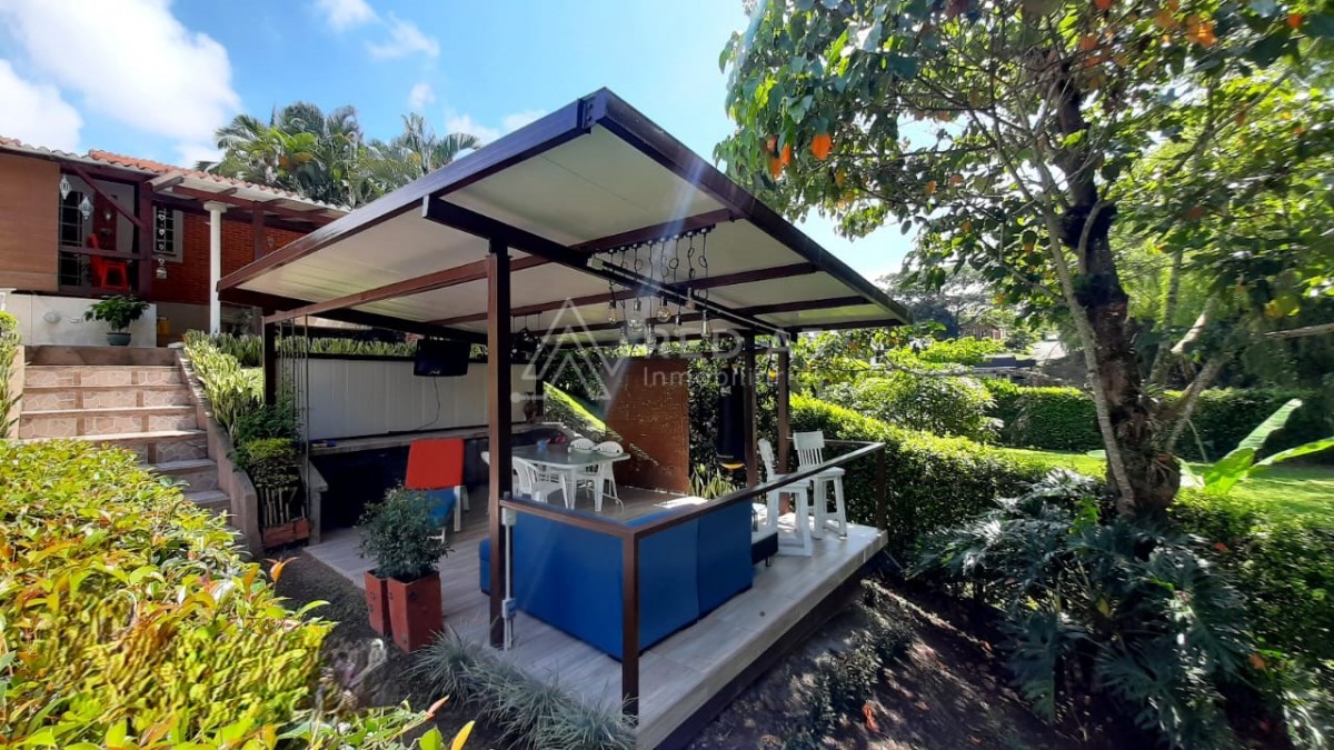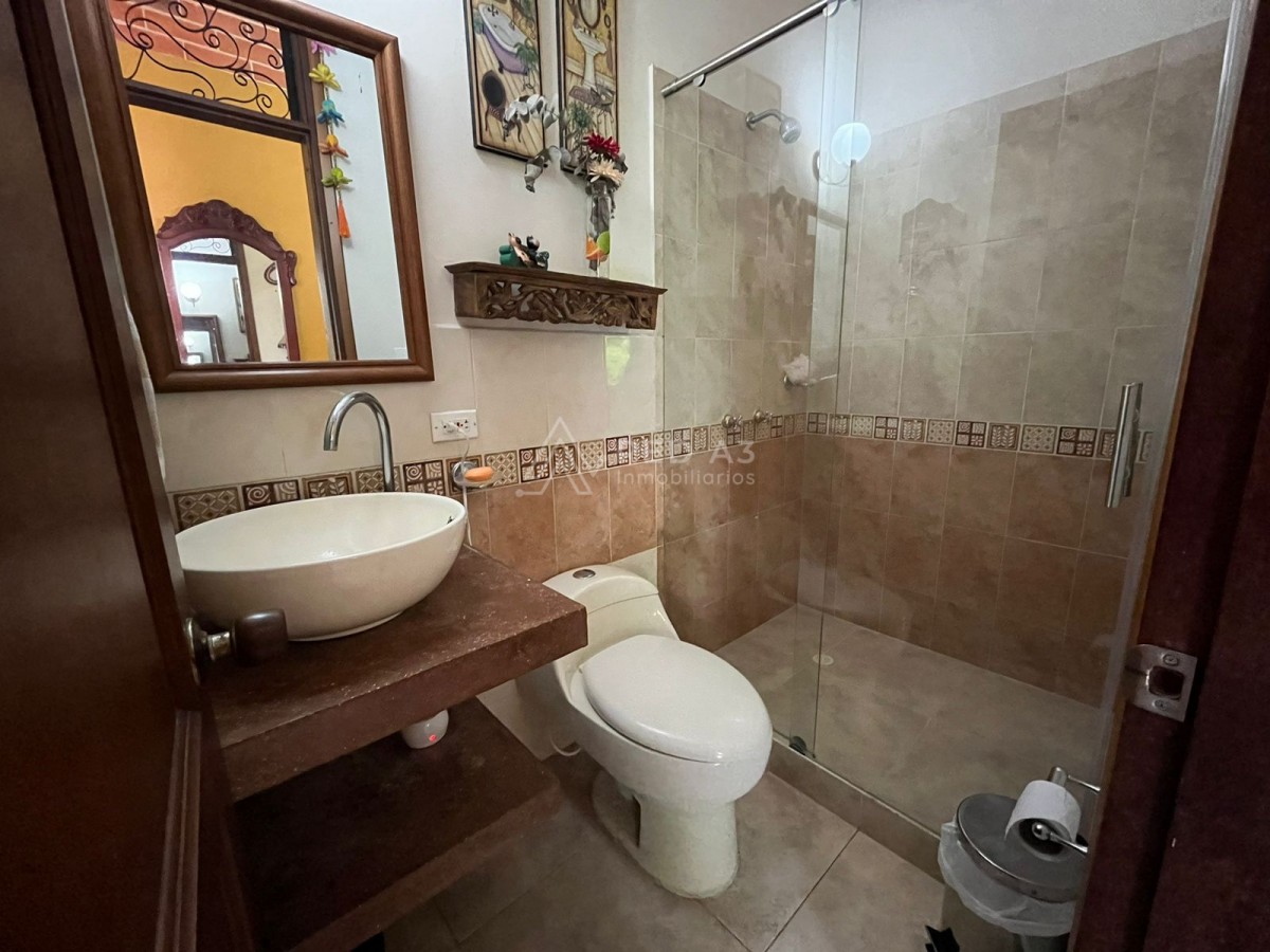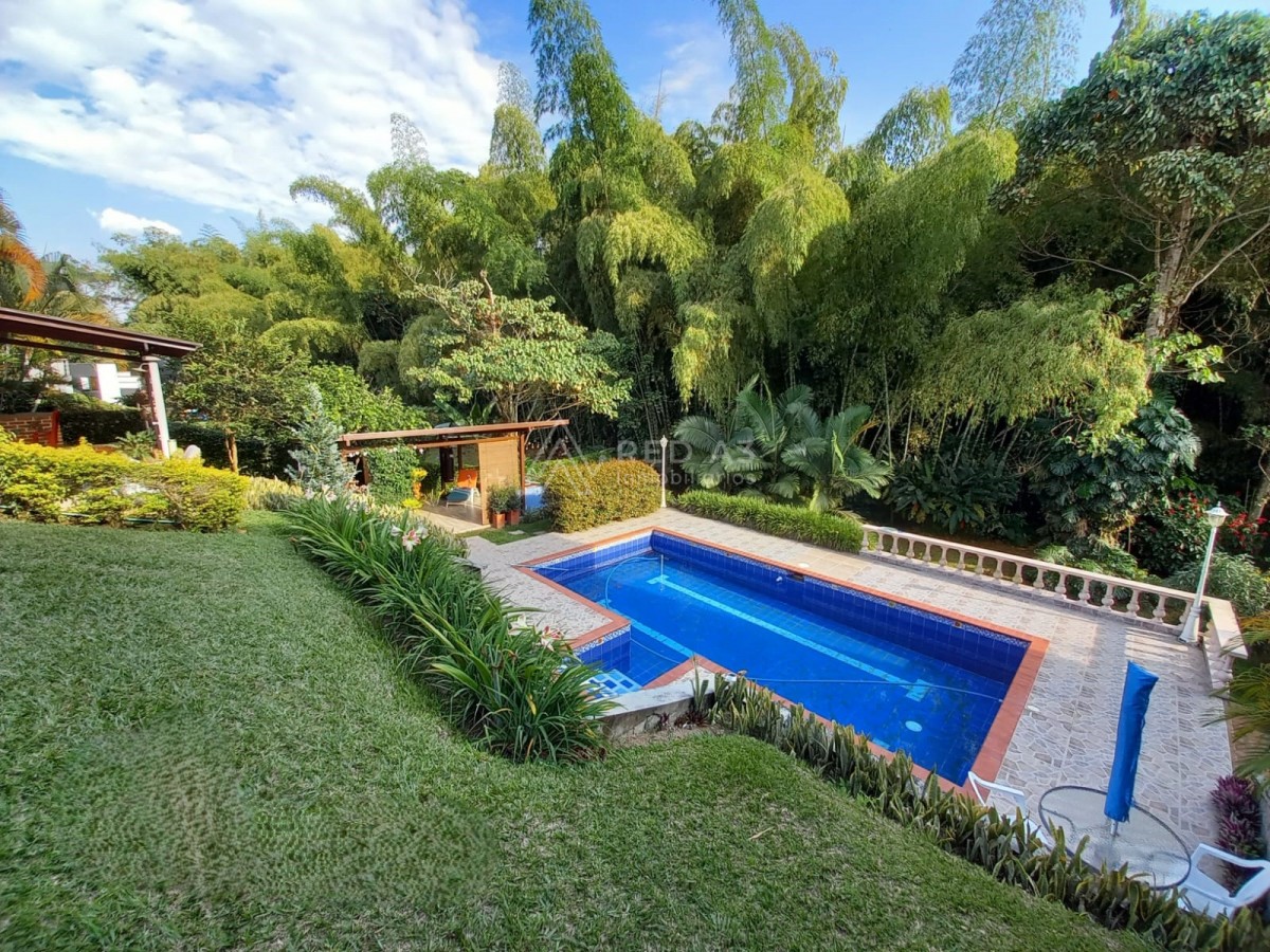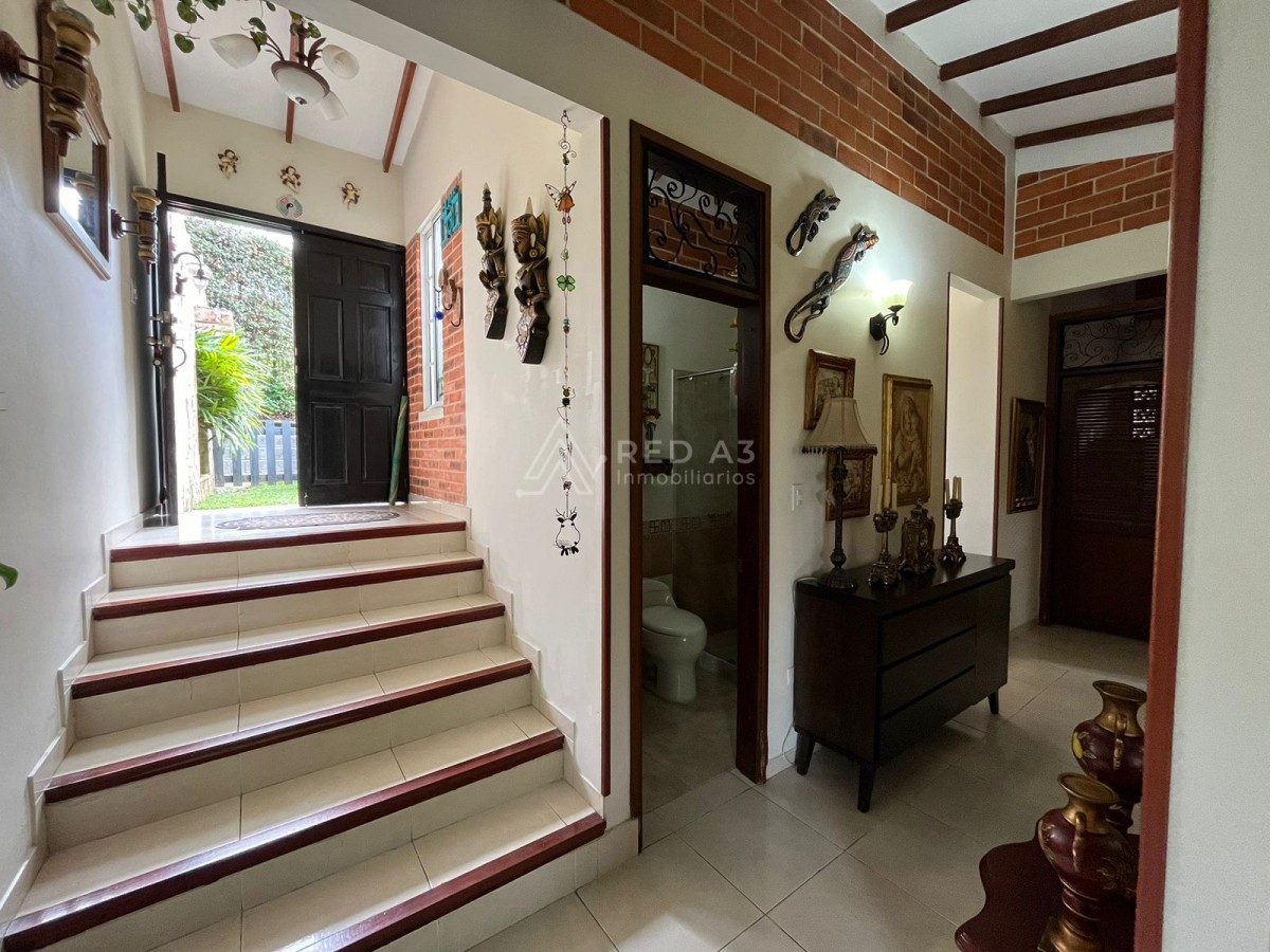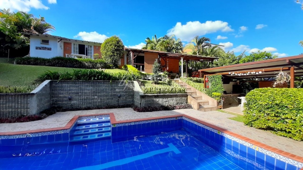 La casa tiene un diseño tradicional con parte de ladrillo a la vista, construida en un lote mayormente inclinado pero logrando distribuir su diseño de la mejor manera dentro del lote, cuenta con una sala exterior dispuesta para compartir con familia y amigos, como también una piscina junto a un jardín interno privado de la casa el cual tiene parte de guadual.