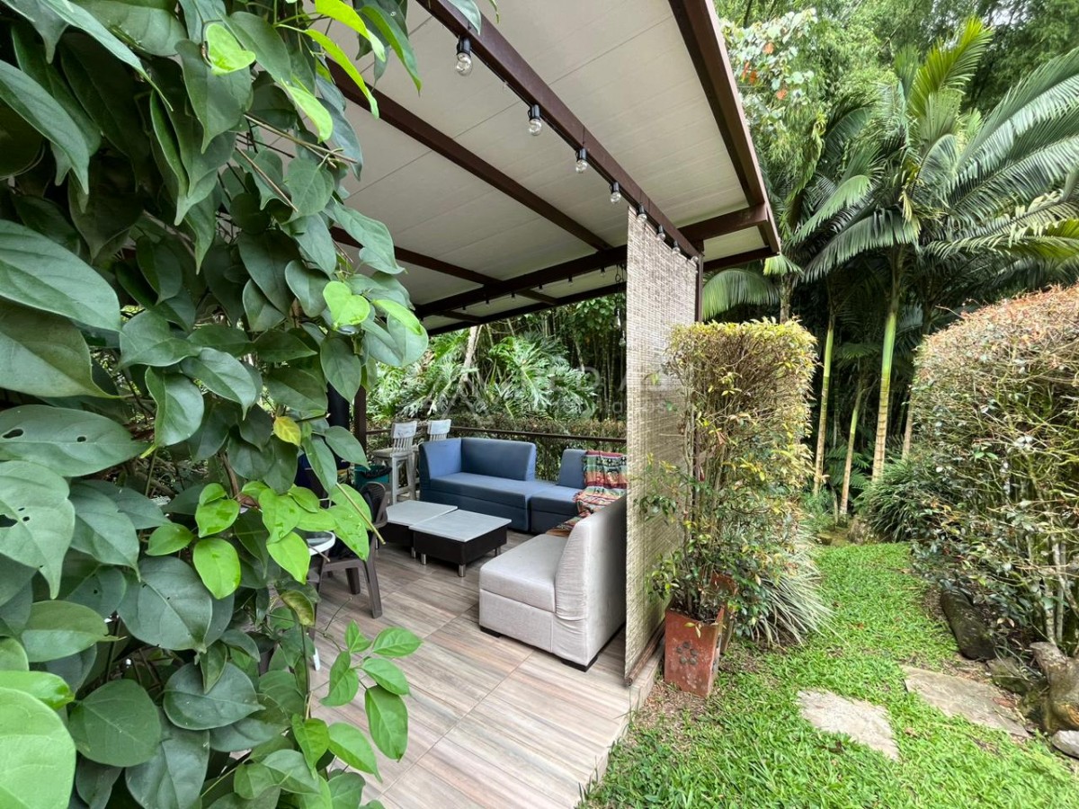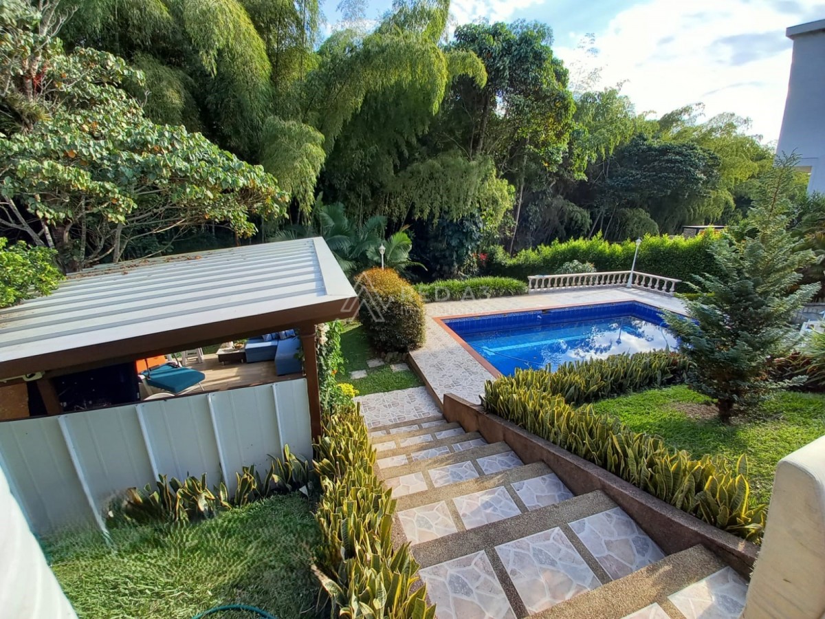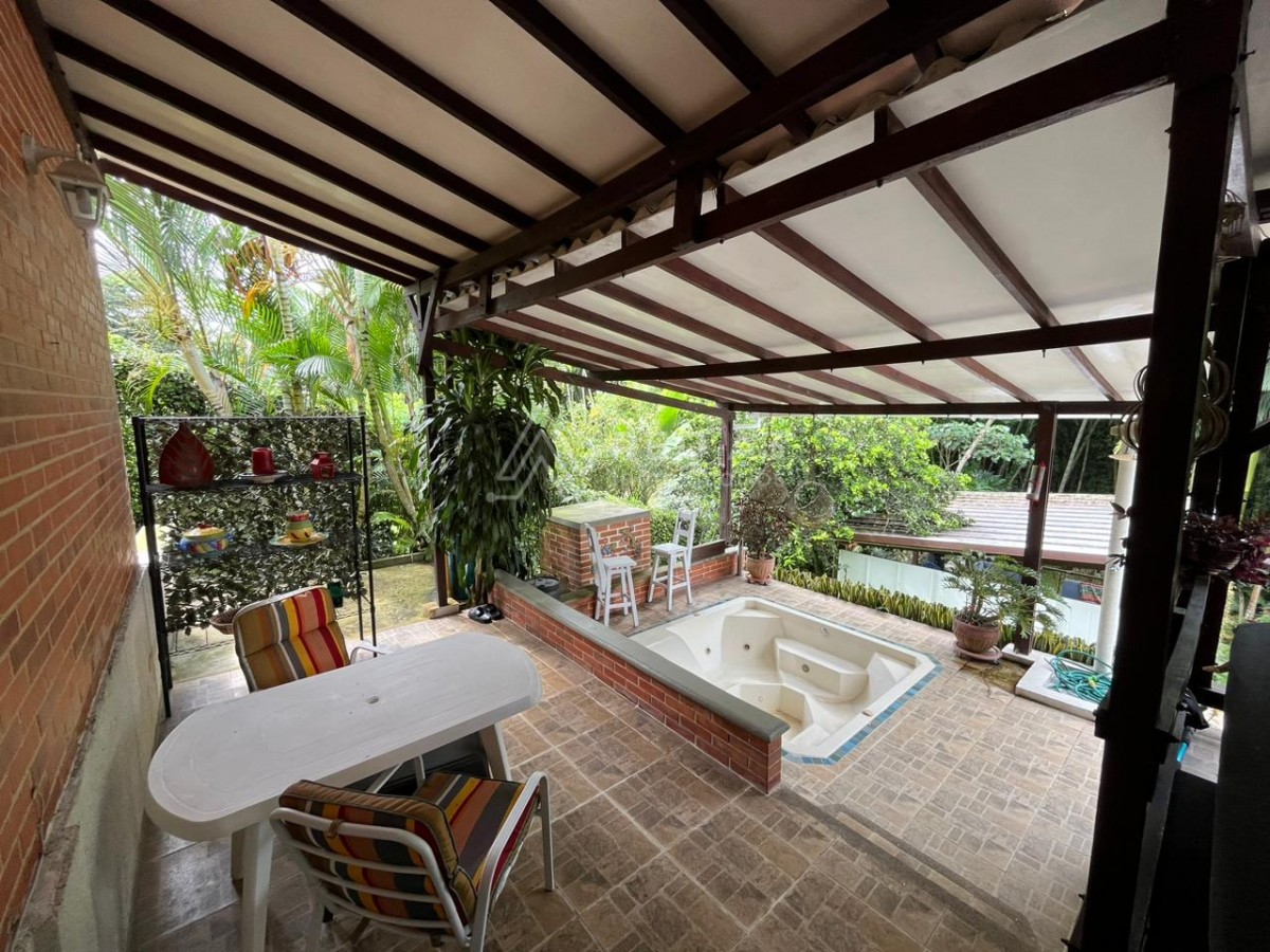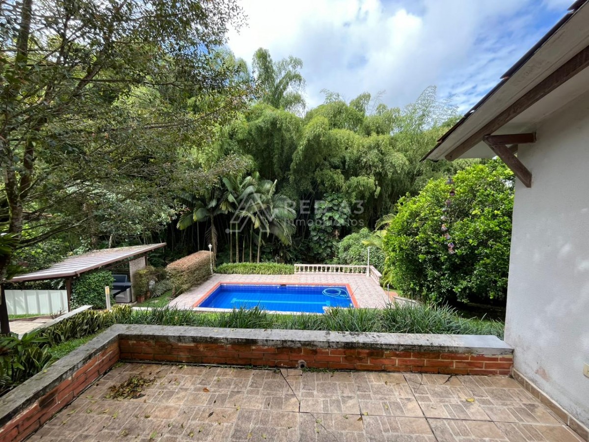 La casa tiene un diseño tradicional con parte de ladrillo a la vista, construida en un lote mayormente inclinado pero logrando distribuir su diseño de la mejor manera dentro del lote, cuenta con una sala exterior dispuesta para compartir con familia y amigos, como también una piscina junto a un jardín interno privado de la casa el cual tiene parte de guadual.