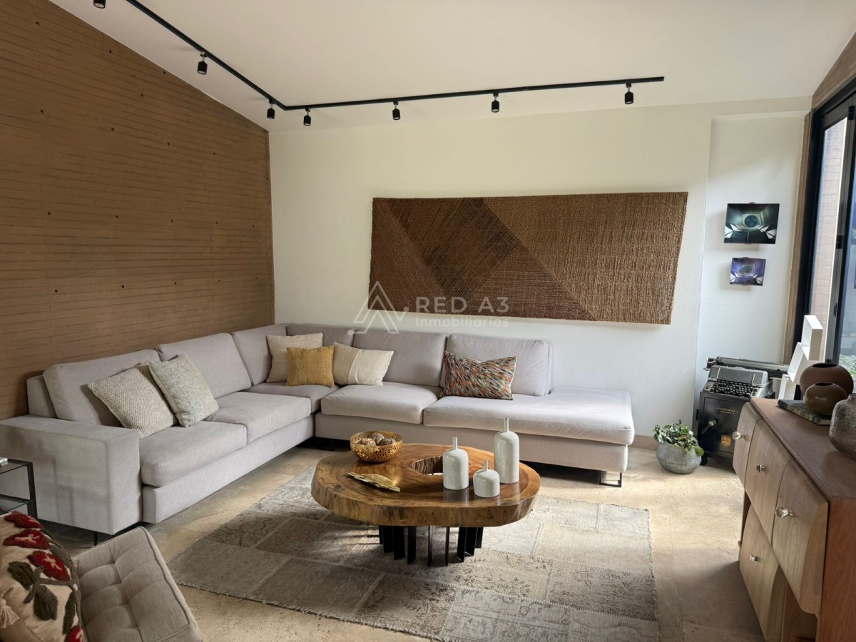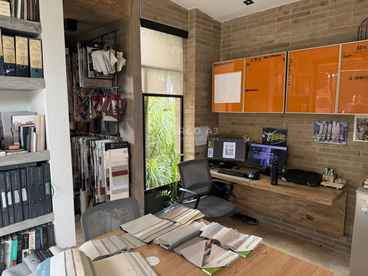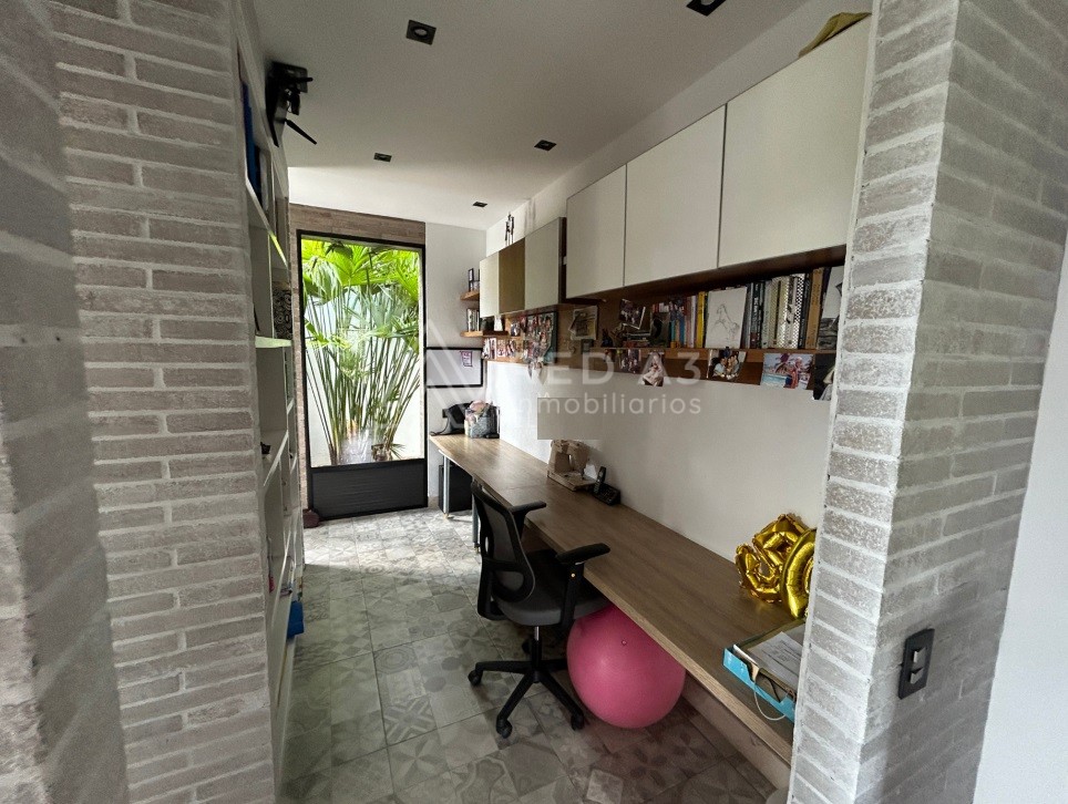 En el centro de la casa, un patio interior con un árbol aporta frescura y un ambiente acogedor. Además, cuenta con una sala de TV, un estudio y tres habitaciones, cada una con baño privado. La habitación principal destaca con un walk-in closet, baño en suite y acceso a una terraza privada.