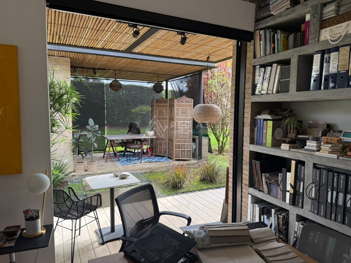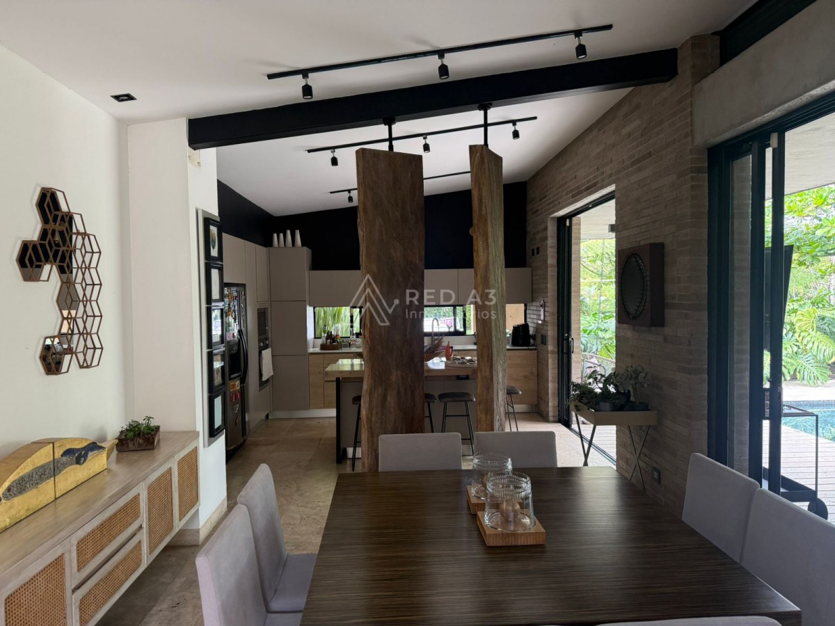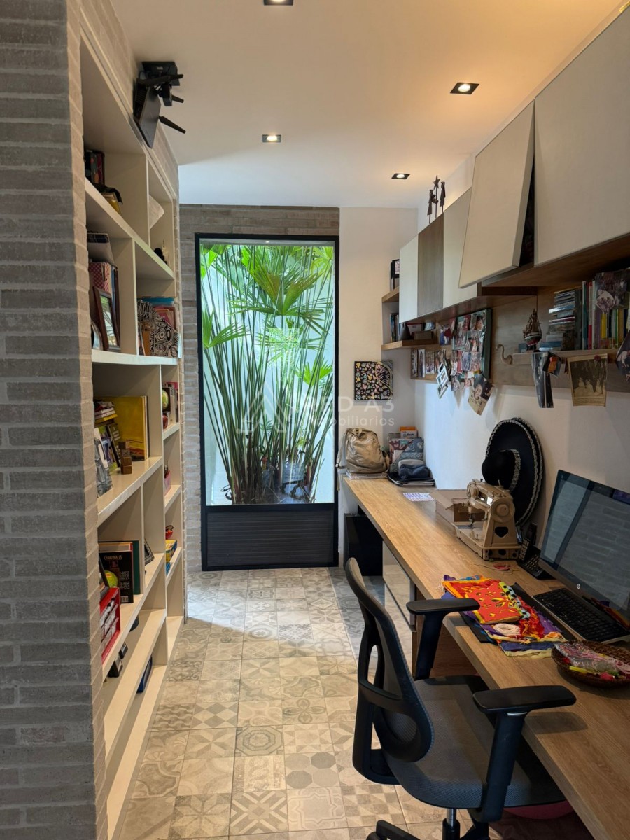 En el centro de la casa, un patio interior con un árbol aporta frescura y un ambiente acogedor. Además, cuenta con una sala de TV, un estudio y tres habitaciones, cada una con baño privado. La habitación principal destaca con un walk-in closet, baño en suite y acceso a una terraza privada.