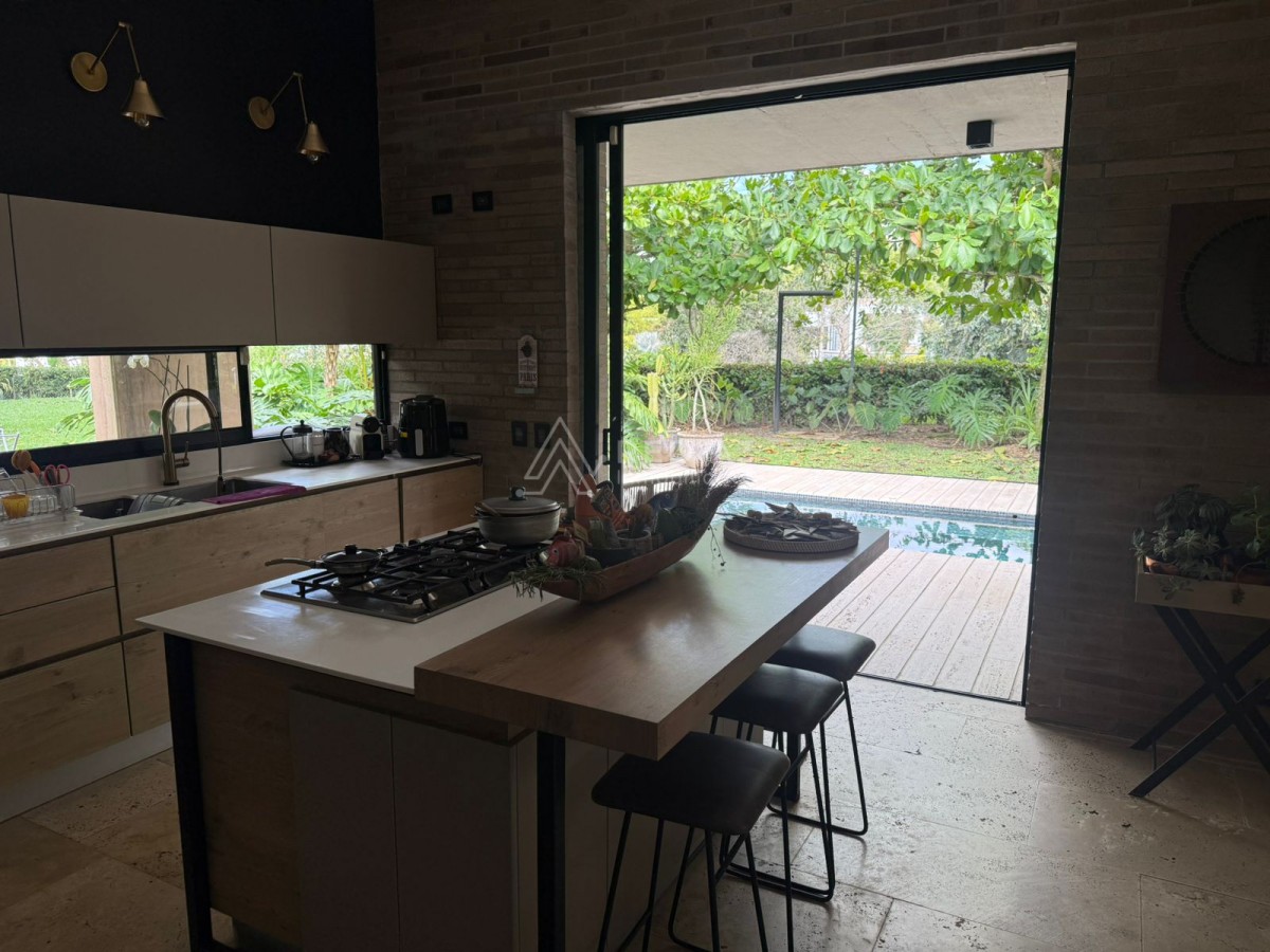 El diseño de concepto abierto integra una cocina integral con barra americana, perfecta para compartir momentos en familia. La amplia zona de ropas y la habitación de servicio con baño privado añaden practicidad a tu día a día. La sala y el comedor se abren a una encantadora terraza con jacuzzi, ideal para relajarte y disfrutar del espectacular paisaje.