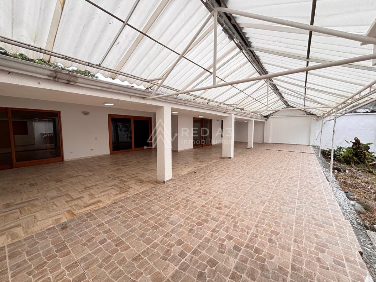 Casa Comercial en Arriendo en el sector de Álamos, de un solo nivel, con un área construida de 285 mts y el área del lote es de 593 mts con espacios amplios y generosos, cuenta con espacio para recepción, al ingreso tres espacios, baño social, cocina amplia integral, parqueadero con puerta eléctrica, baño social, un amplio espacio con baño privado, un baño social, 3 espacios adicionales, uno de ellos con baño privado, una terraza en la parte posterior de la casa cubierta, con un espacio adicional con baño y un pequeño Jardín.
