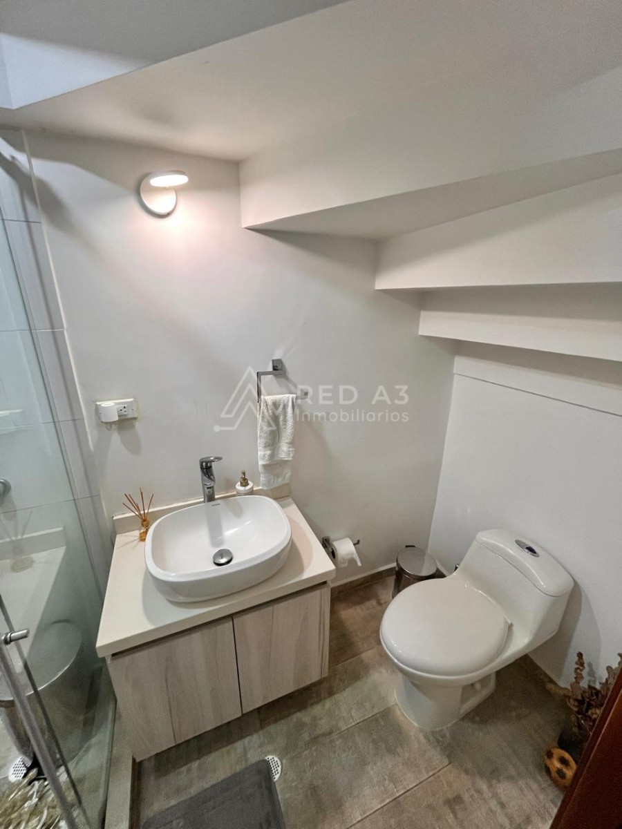 Primer nivel: sala-comedor, cocina integral, patio de ropas y habitación auxiliar con baño.