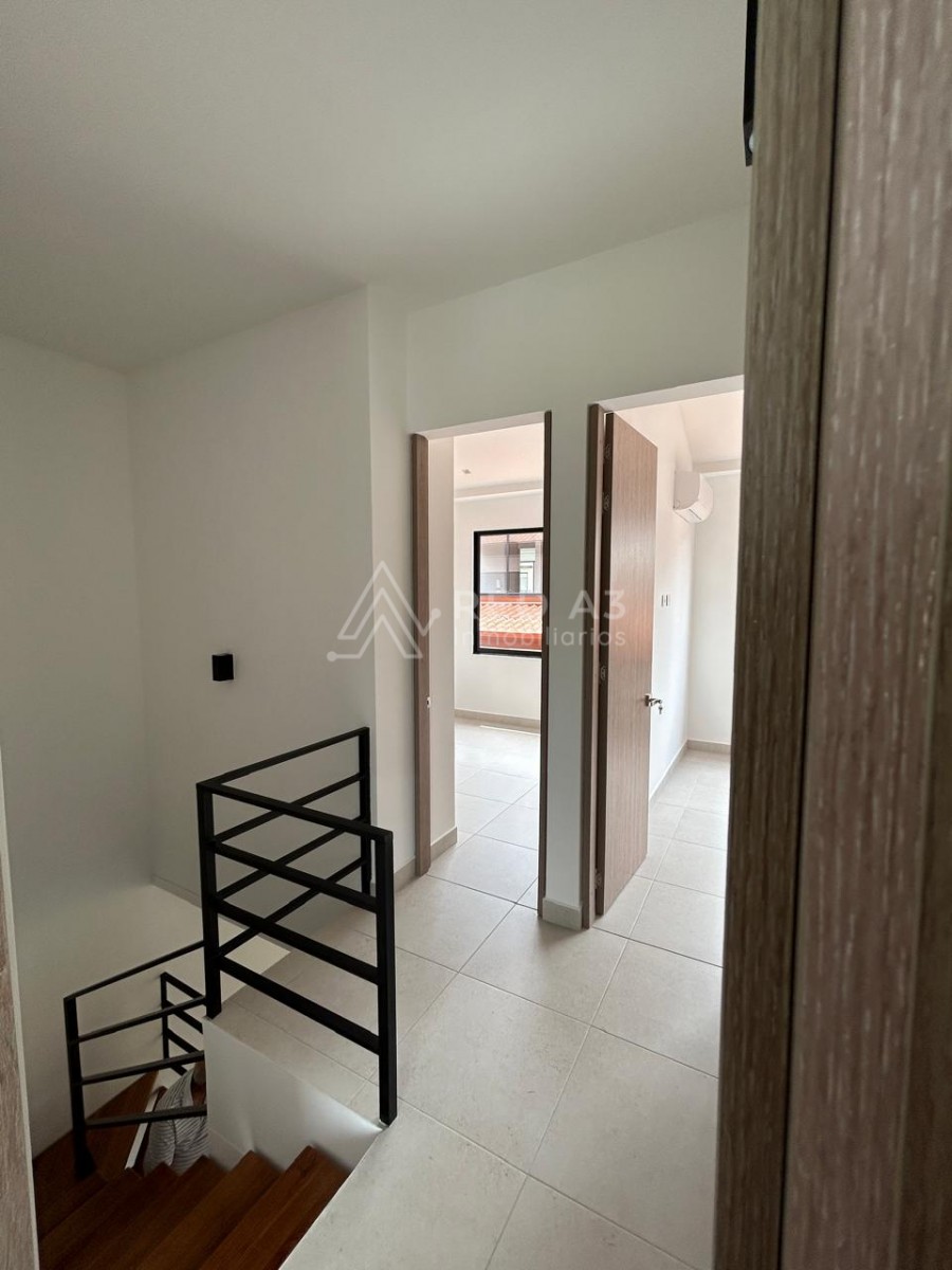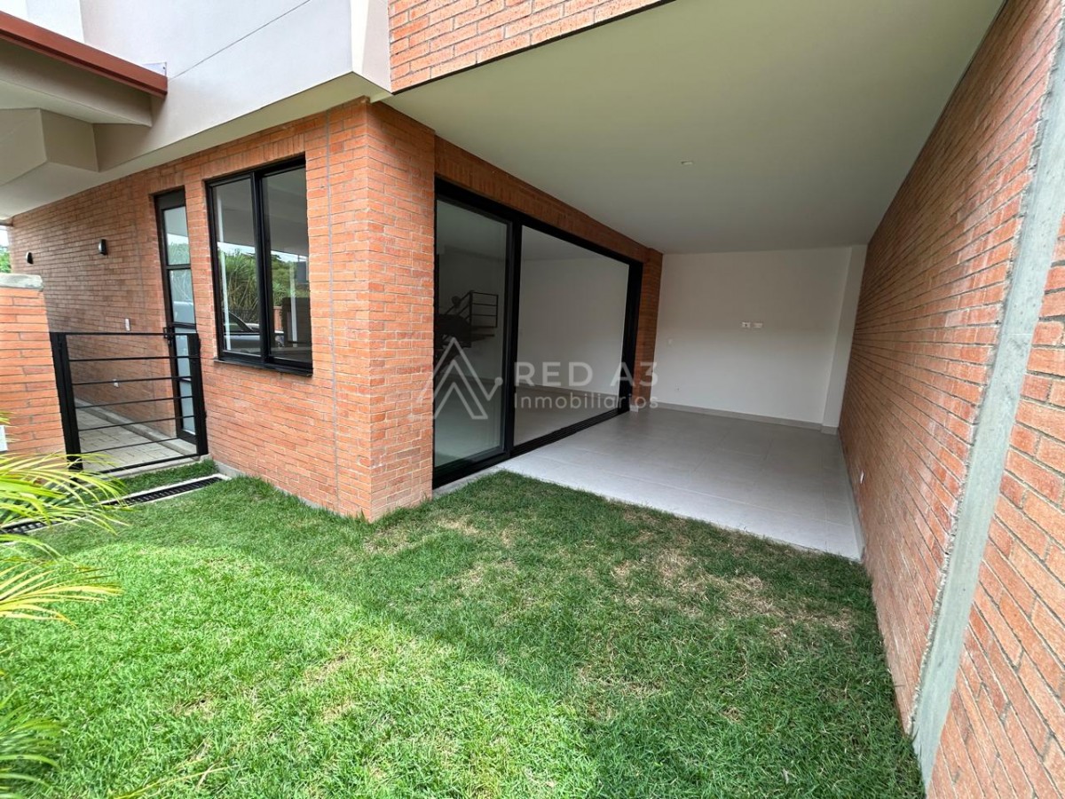 En el primer nivel se ubican un cómodo estudio, sala–comedor, baño social, cocina integral y zona de ropas independiente. Adicionalmente, dispone de un área interna de aprovechamiento que amplía la sala–comedor y se integra armoniosamente con un jardín interior, ideal para el descanso y la vida familiar. La vivienda ofrece tres parqueaderos, uno de ellos cubierto, brindando comodidad y seguridad.