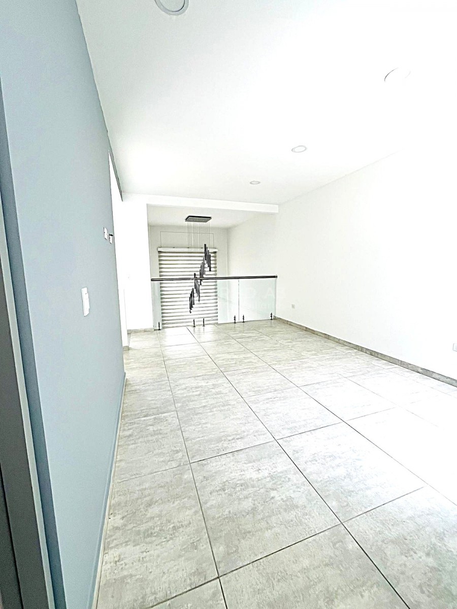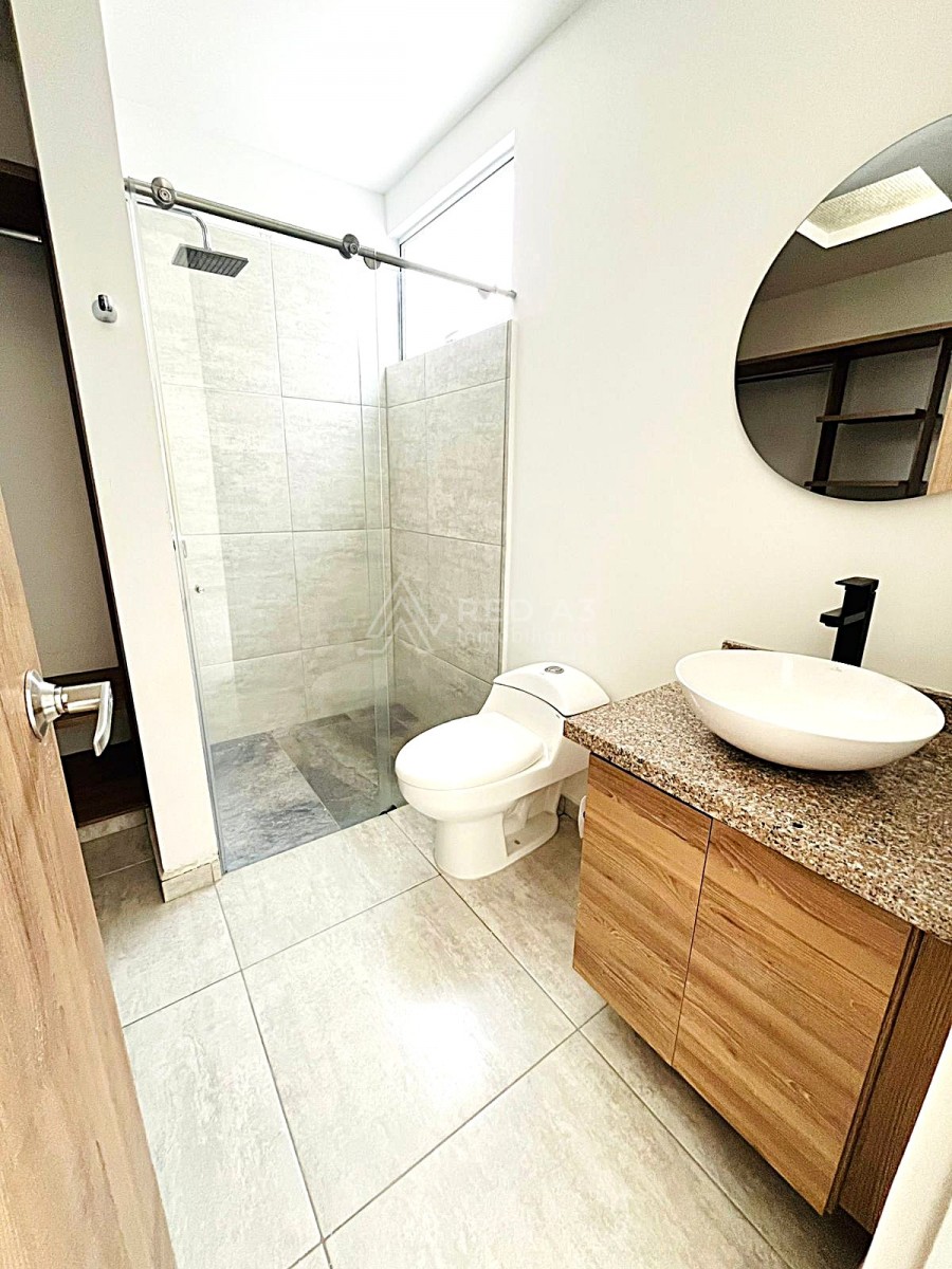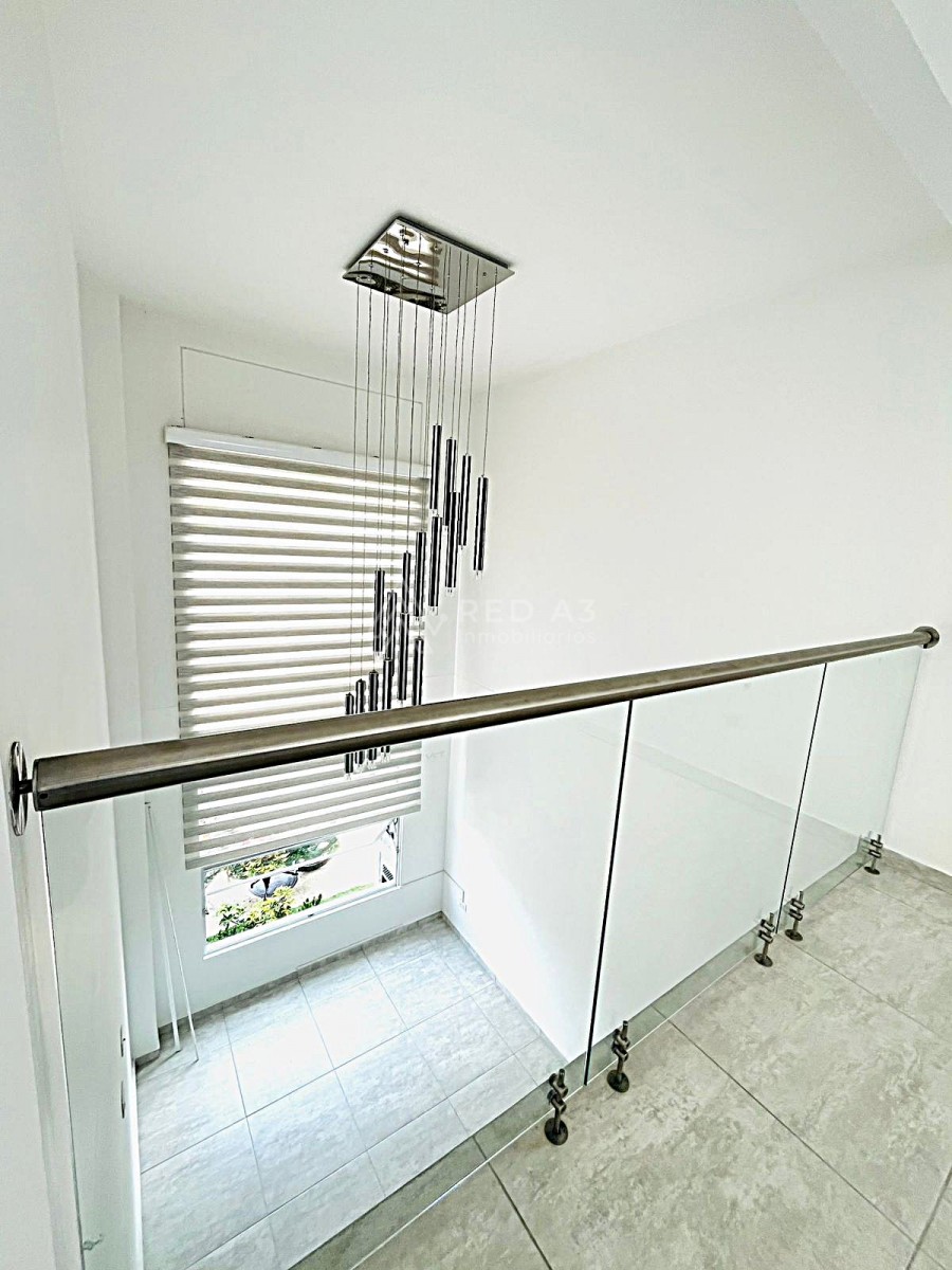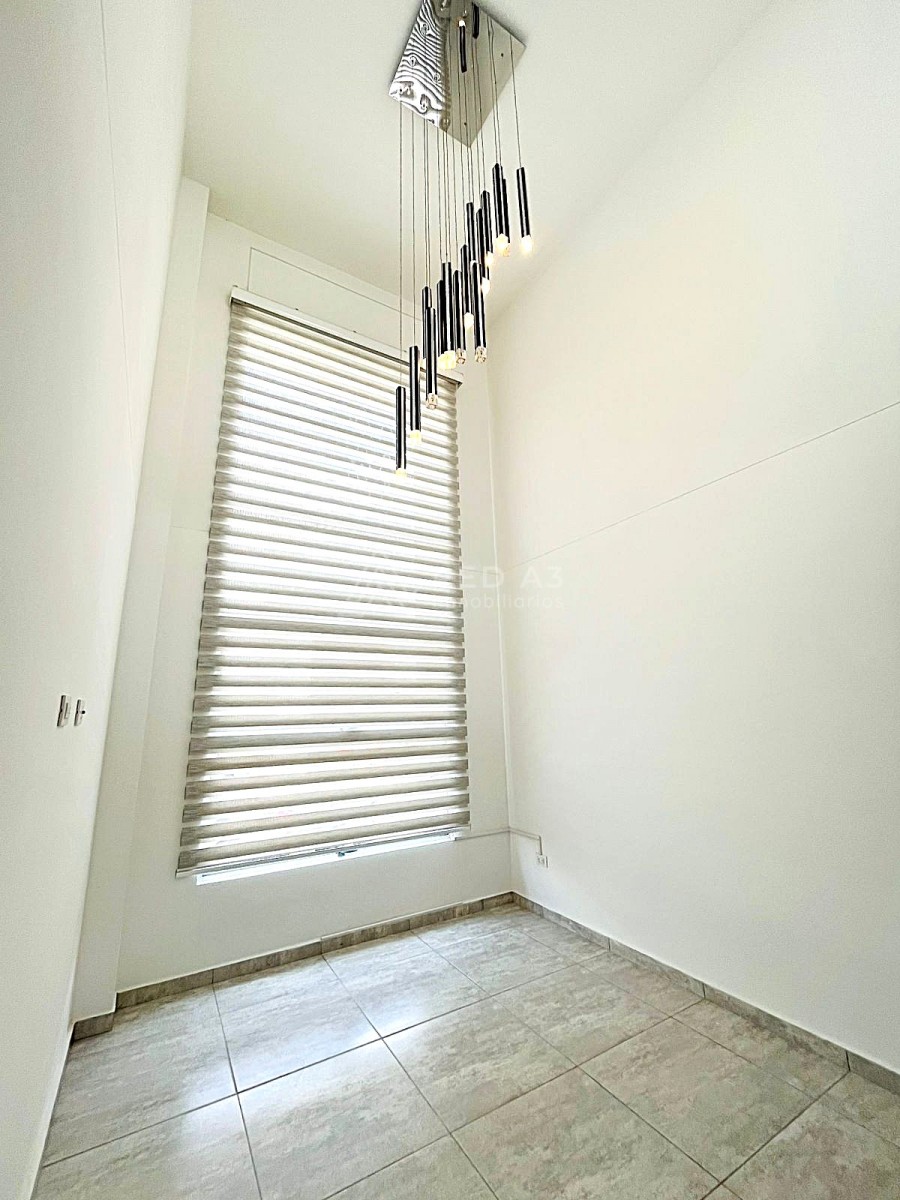 La propiedad es de dos niveles y cuenta con un área construida de 134 m², distribuida de manera funcional en: sala con persiana con motor, comedor, cocina integral con amplia barra, estudio, patio de ropas con techo corredizo y jardín interior. Dispone de cuatro habitaciones, la principal con baño privado y vestier; las habitaciones auxiliares cuentan con clóset. En total, la casa ofrece tres baños completos.