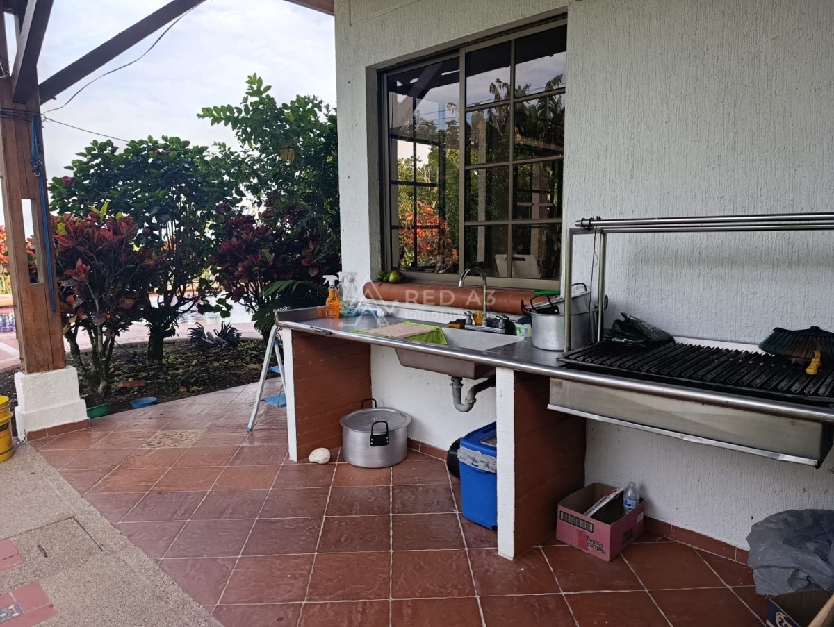 Cuenta con 3 parqueaderos cubiertos, 4 descubiertos, piscina con diseño atractivo, jacuzzi, quiosco, cuarto de máquinas, cancha de fútbol (tamaño estándar), tanque de reserva, cocineta para asados y BBQ, zona verde amplia, árboles frutales y cultivos como: Naranja, Mandarina, Mango Limón, Zapote, Plátano, Banano, Yuca, Guayaba.