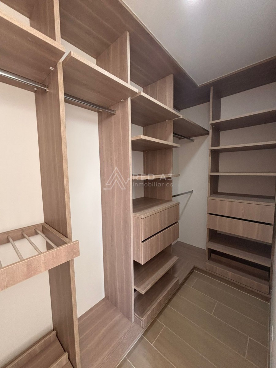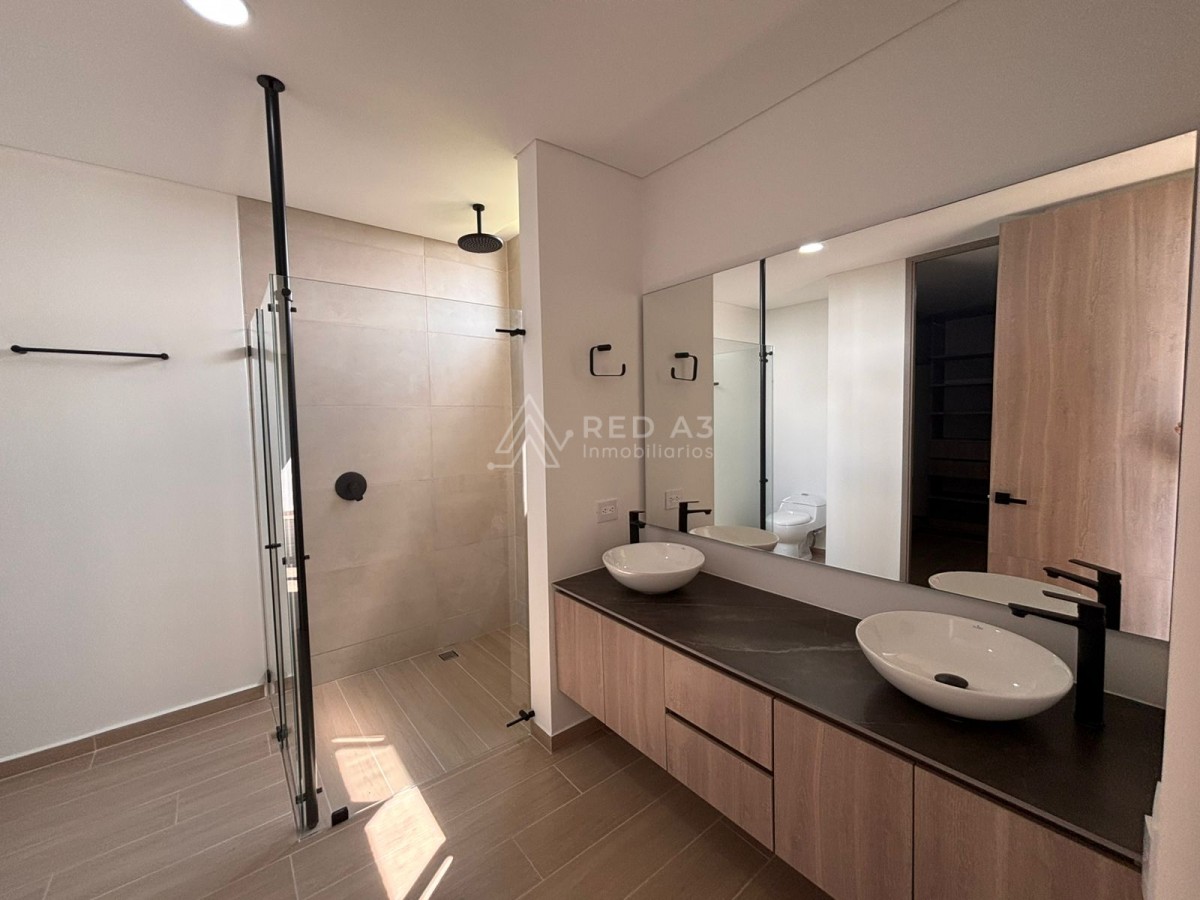 Diseñado para brindarte comodidad, estilo y calidad de vida. Cuenta con 3 habitaciones, todas con baño, dos de ellas con vestier, la principal incluye 2 walking closets independientes y baño privado. Además, tiene un baño social independiente. Amplia y generosa sala comedor, cocina integral, con Alacena independiente, cuenta con lavavajillas, zona de ropas independiente con baño y habitación del servicio Hall de habitaciones donde podrá ubicar estudio o Family Room. Una terraza con vista a las espectaculares montañas de la ciudad y al fondo, vista a la ciudad. Cuenta con Depósito y 2 parqueaderos.