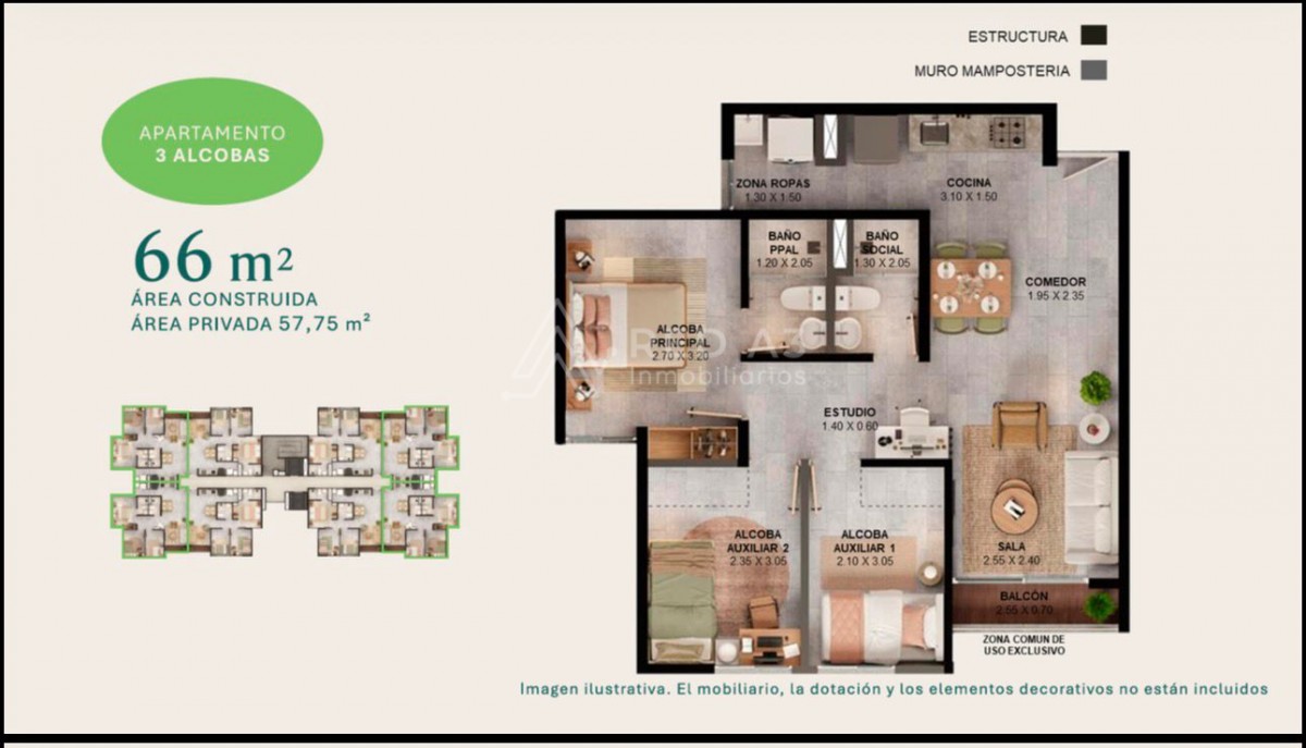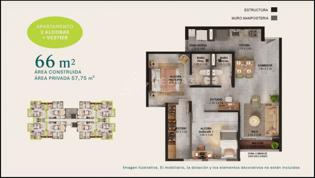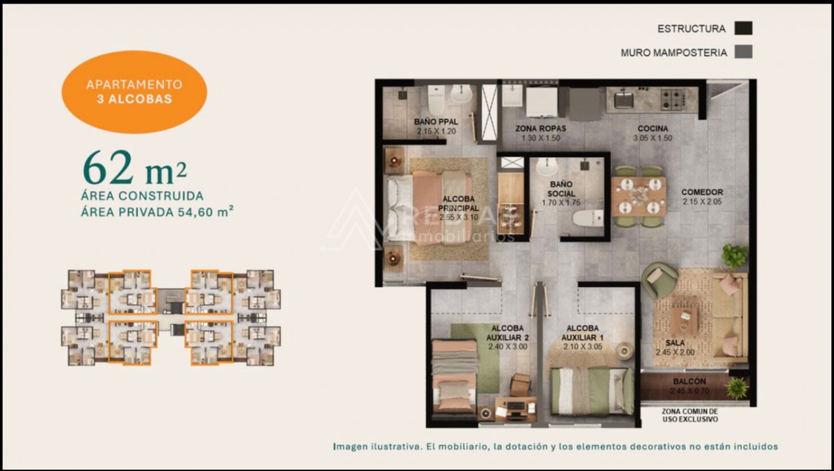 Los apartamentos han sido diseñados para sentirse como verdaderos hogares. Con áreas desde 62 y 66 metros cuadrados, ofrecen opciones de dos y tres alcobas, amplios balcones y espacios llenos de luz natural. Cada detalle refleja un equilibrio entre diseño contemporáneo, funcionalidad y confort, creando ambientes acogedores y pensados para el bienestar diario.