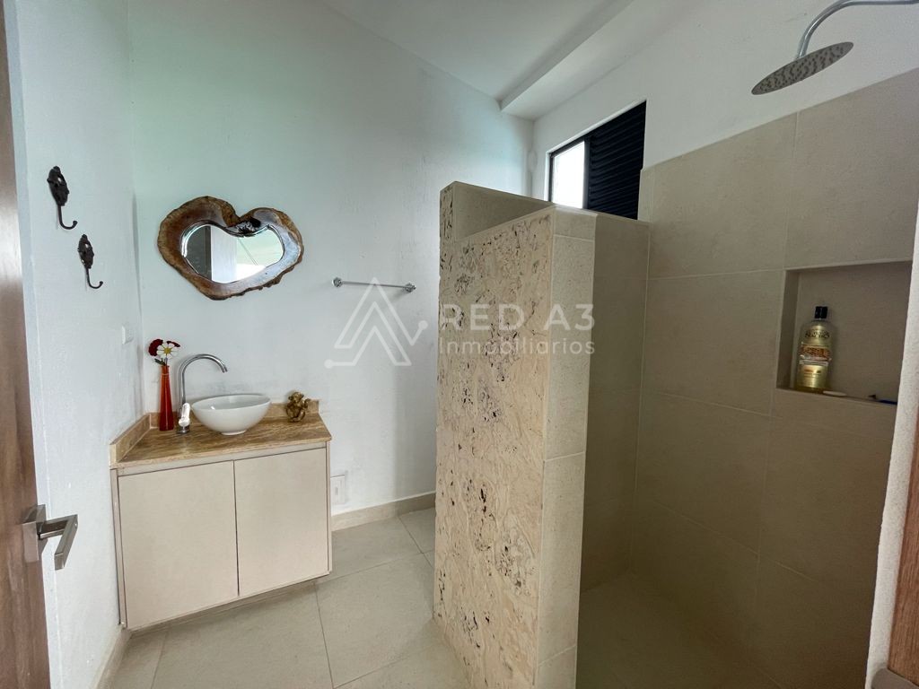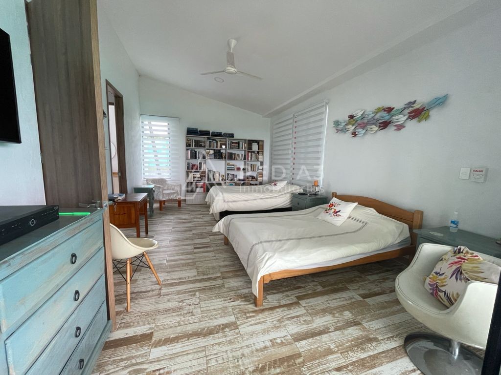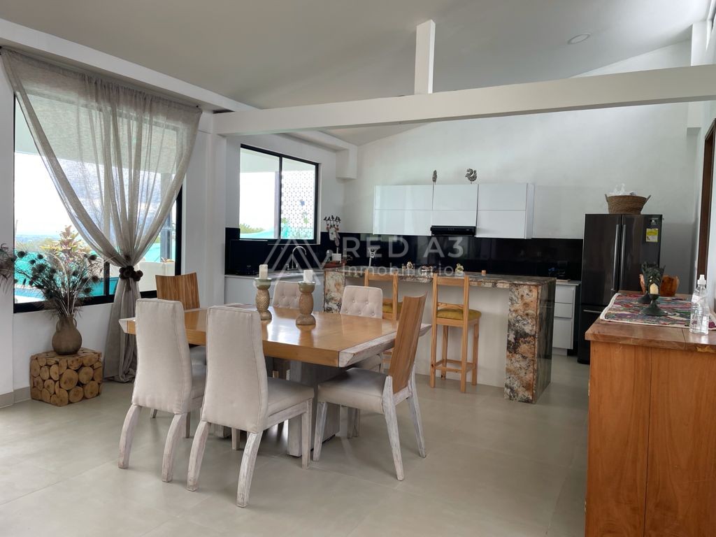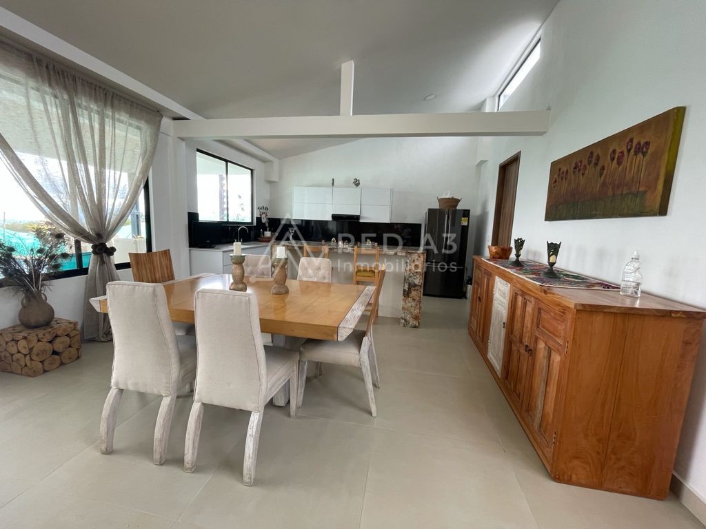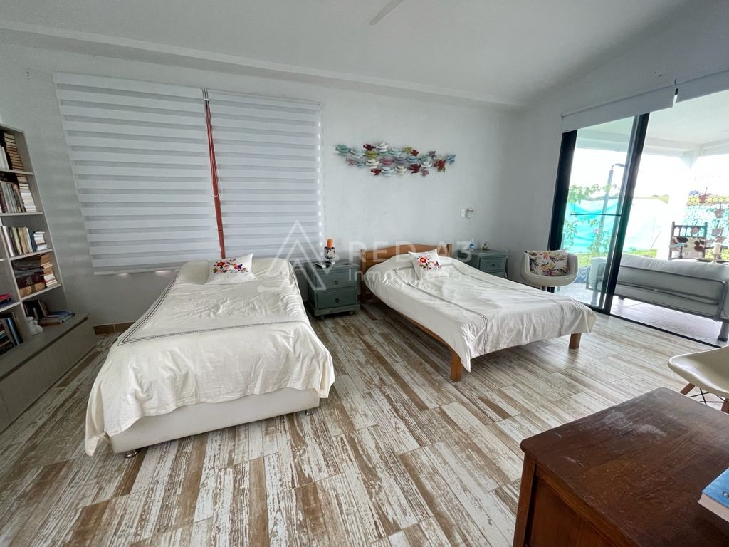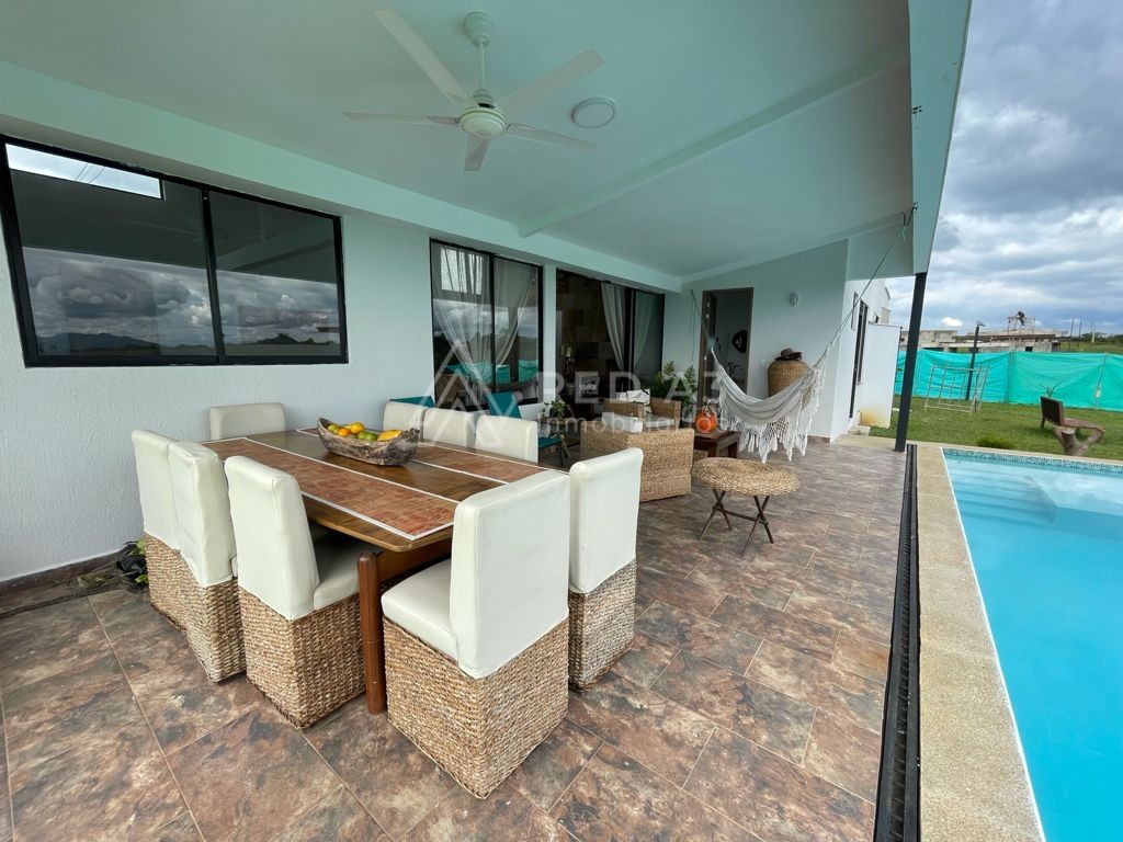 La casa cuenta con lote de 1500m2 y 360m2 construidos, sala-comedor, baño social, zona de ropas y habitación de servicio con baño. Acceso a parqueadero cubierto para 2 carros y depósito. Tiene 3 habitaciones, habitación auxiliar con clóset y baño con luz natural en la ducha y 2 habitaciones principales con muy buena ventilación e iluminación, con vestier y baño con doble lavamanos cada una. En la parte exterior la casa tiene una terraza social cubierta y piscina con baño completo con ducha.